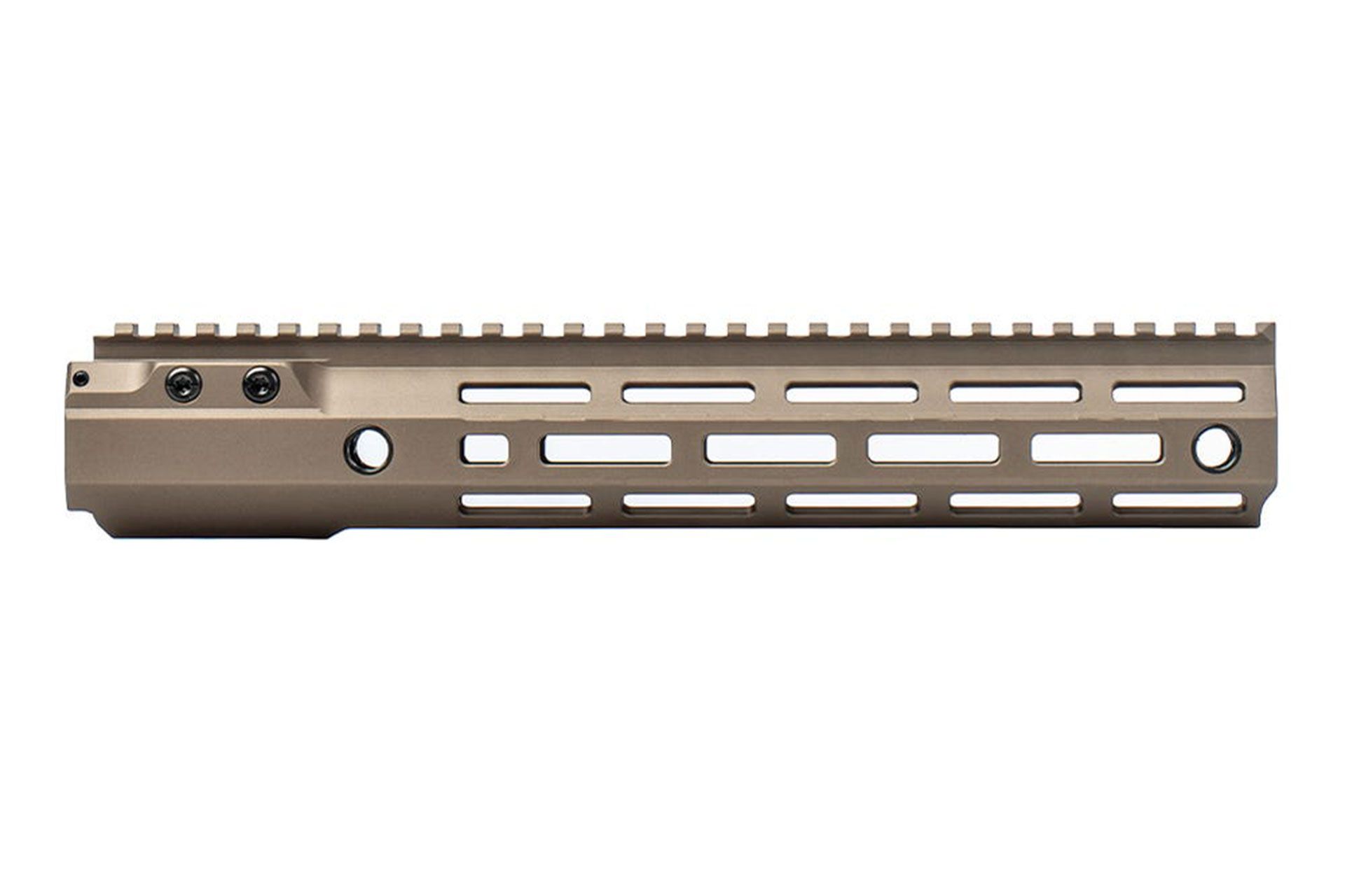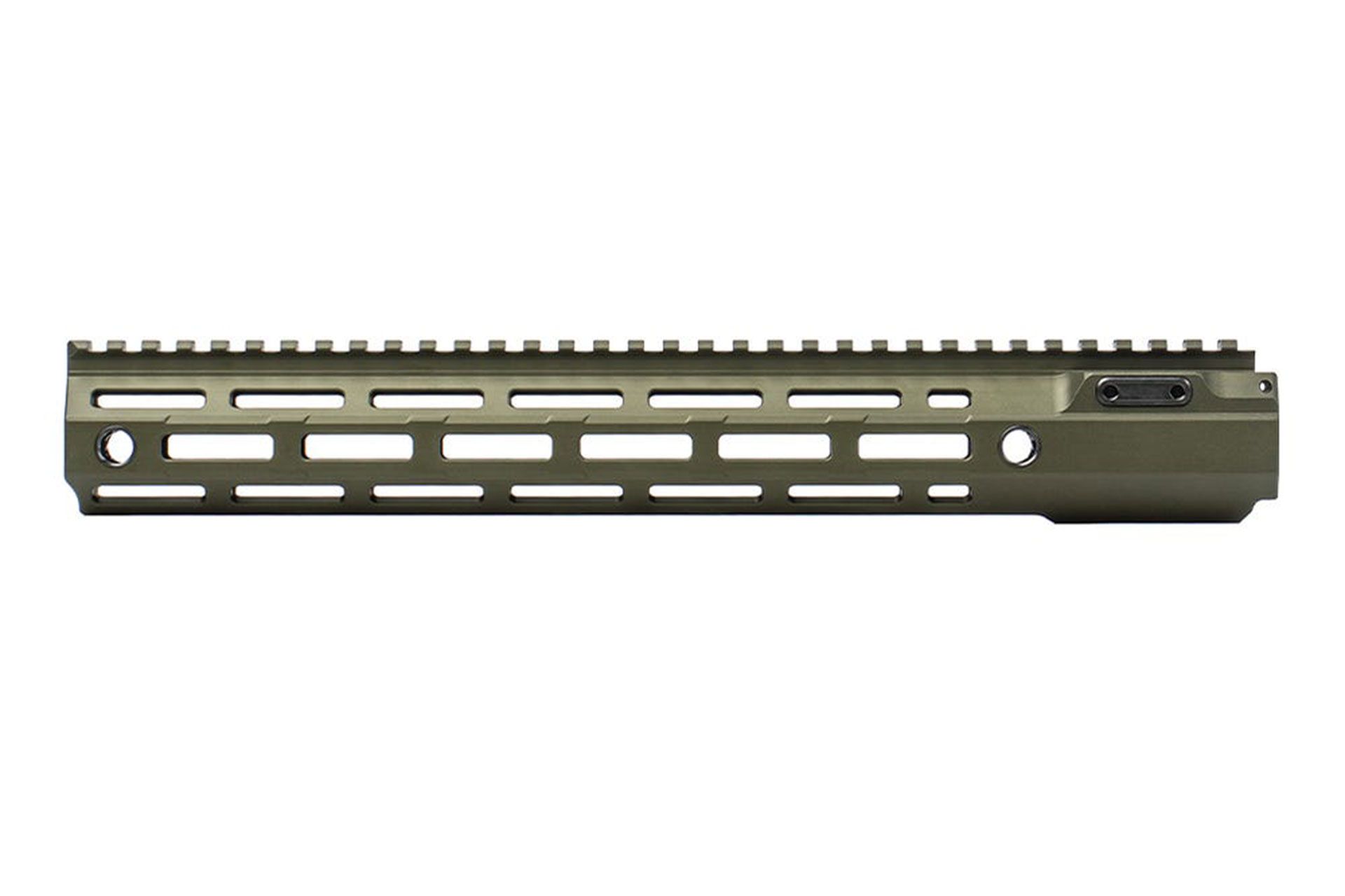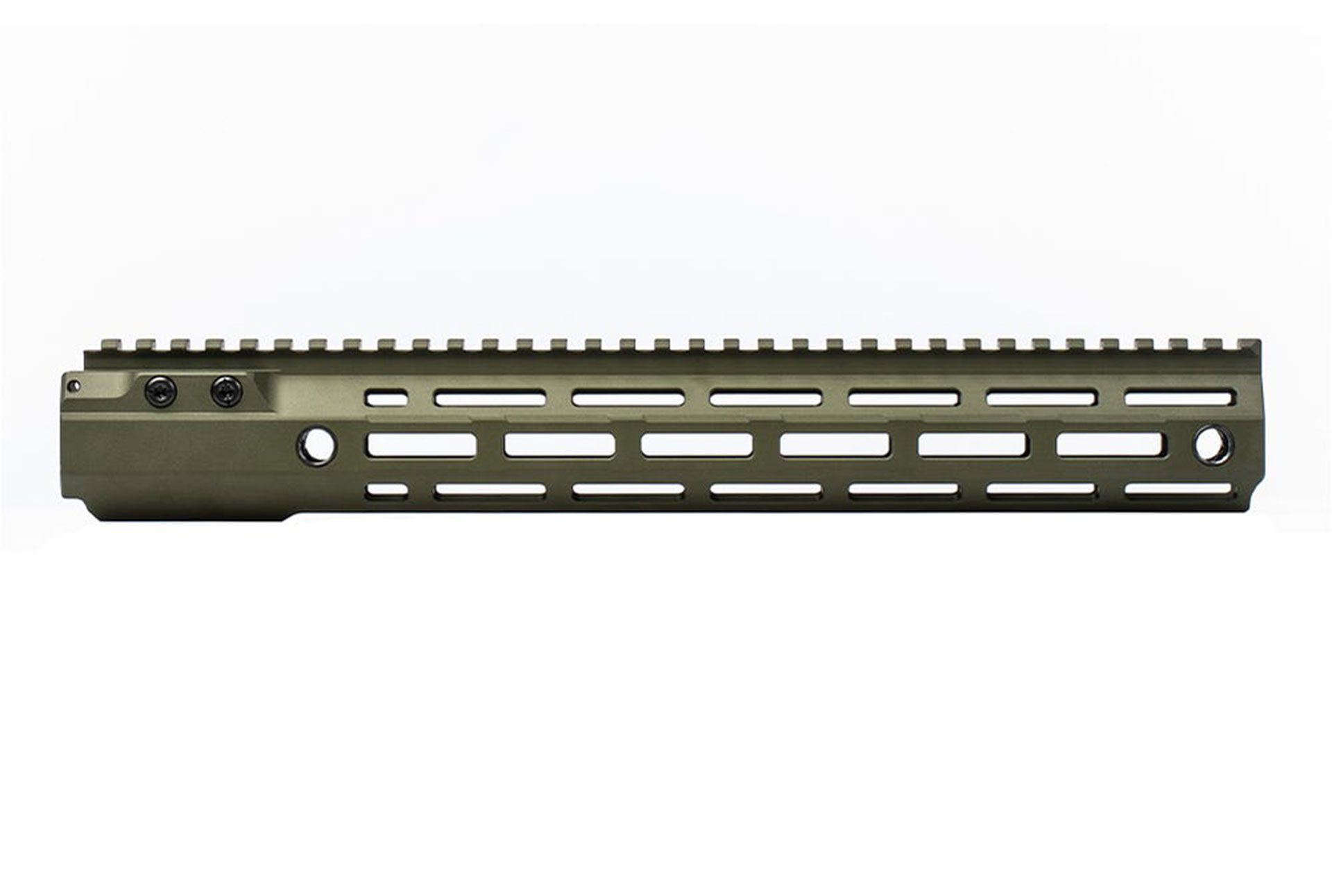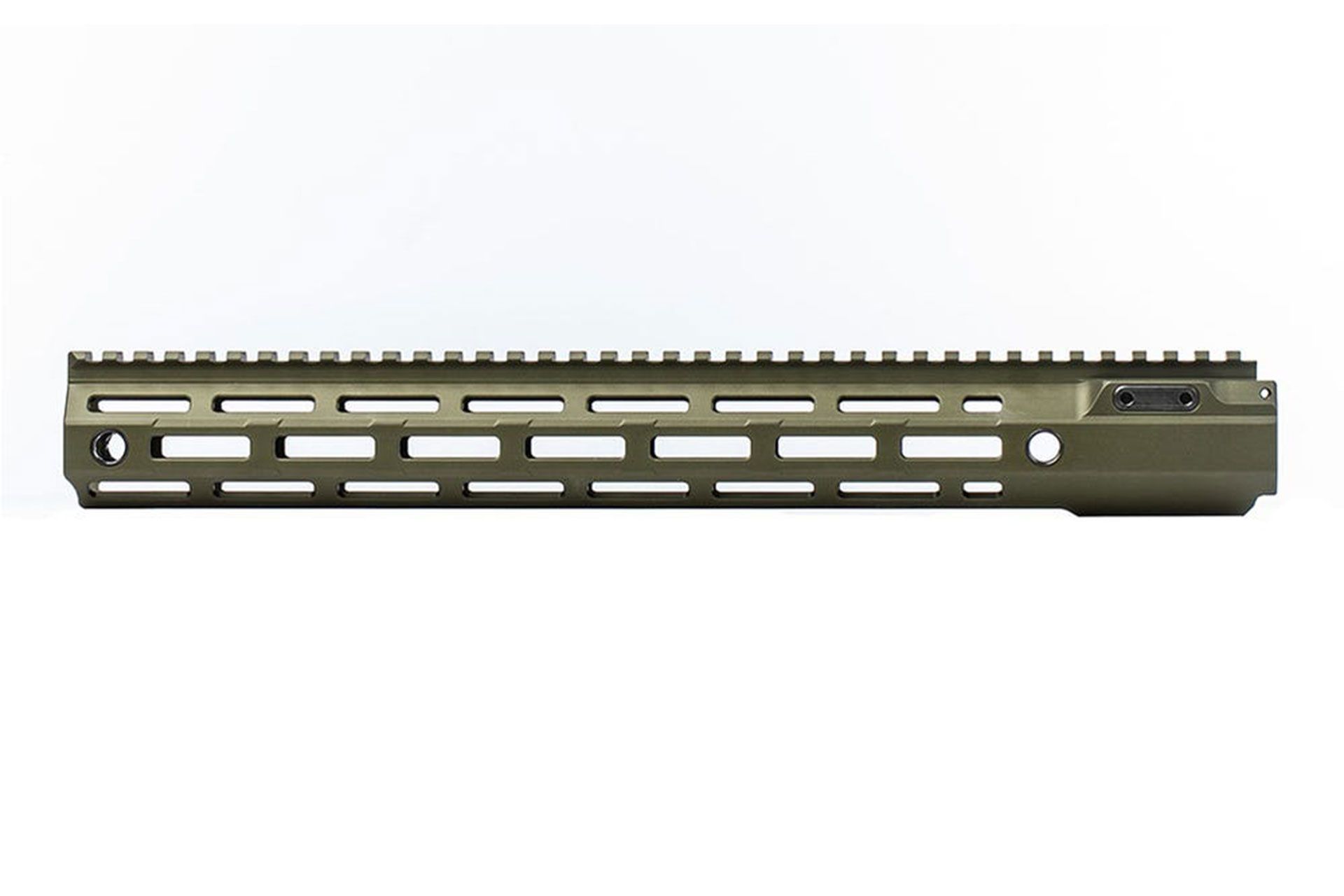 The Aero Precision Minimal Optical Deflection (MOD) 4 handguard seamlessly blends robust construction with an ergonomic form factor, ensuring no compromises between the two. Machined from 6061-T6 aluminum, the handguard is engineered with a focus on stiffness to drastically reduce deflection under load. It attaches to the upper receiver via a steel barrel nut, which also serves to significantly reduce point-of-impact shift when using an infrared laser aiming device under load.