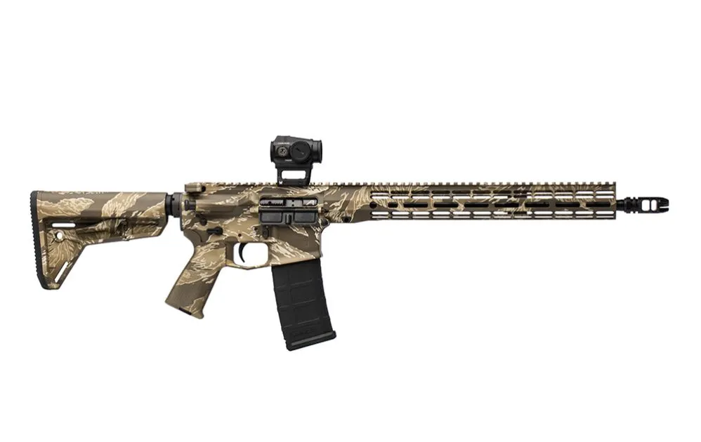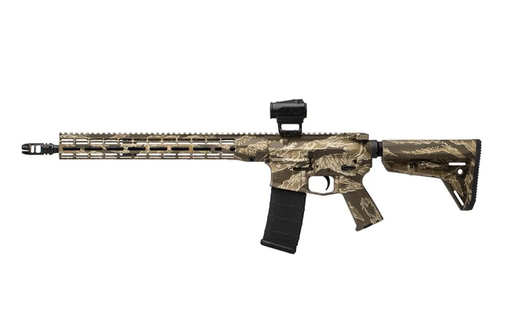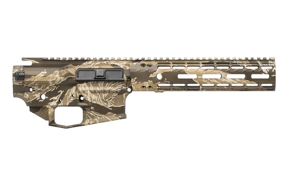The August Builder Sets are here to start your summer build off strong. This month’s set features a take on the cult classic tiger stripe camouflage by Nevada Cerakote. A desert colorway gives it a refreshing look that will look at home on the range or your next arid hunt.