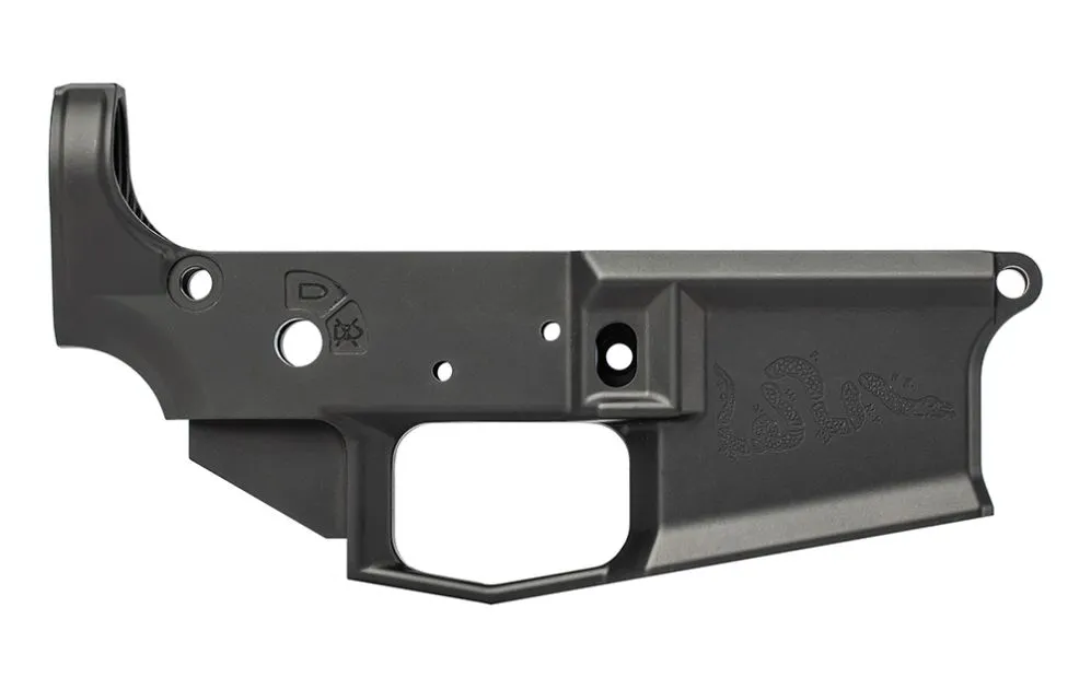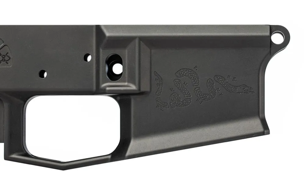 This lower receiver features Benjamin Franklin’s political cartoon “Join, or Die” engraved on the magwell. This design was created in 1754 to represent the need for unification among the Thirteen Colonies later becoming an iconic symbol leading up to and during the American Revolution. The cartoon was used to encourage Colonists to stand together as it was pivotal to the success of the Revolutionary War. This design remains symbolic of American pride, perseverance, and unification nearly 250 years later.