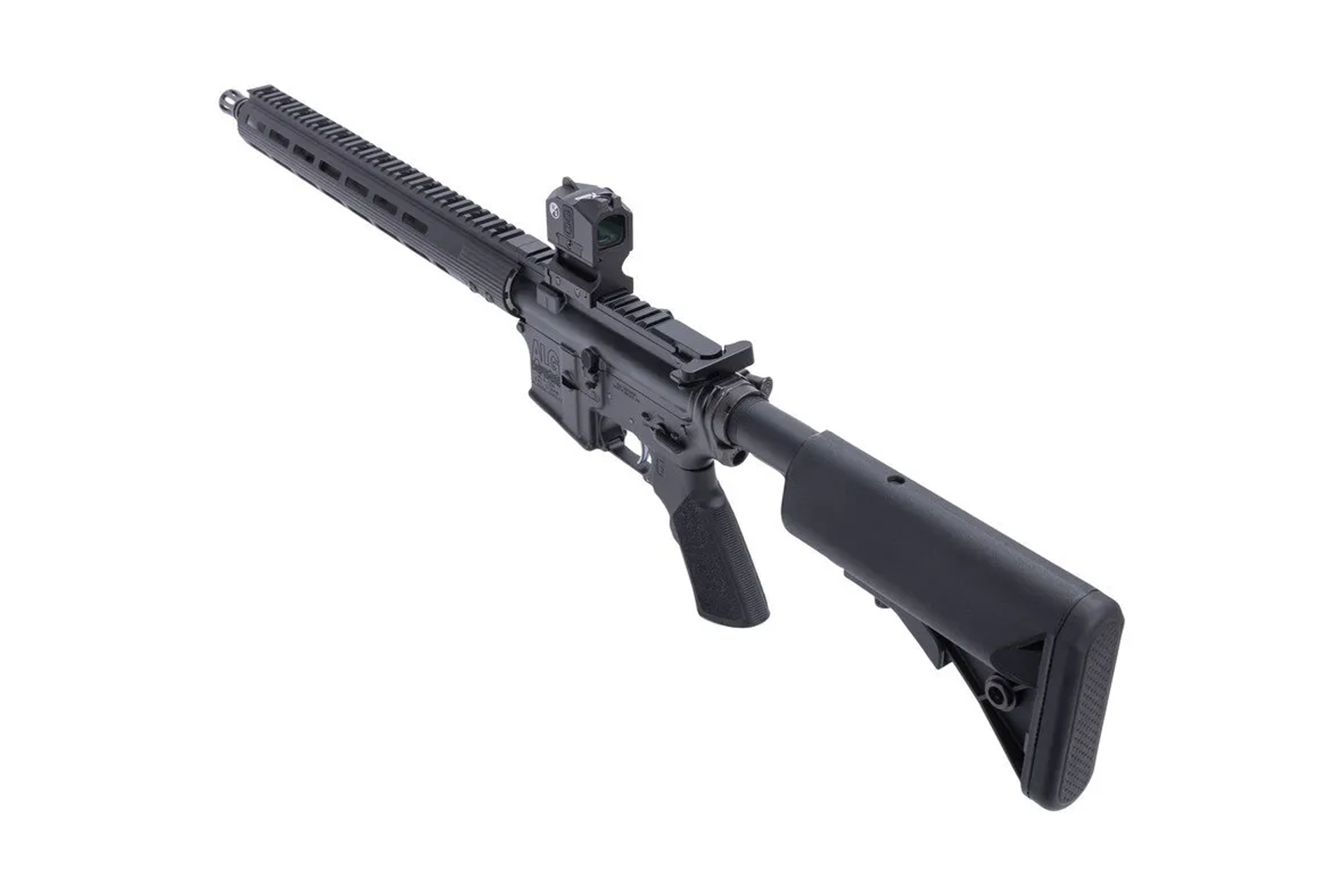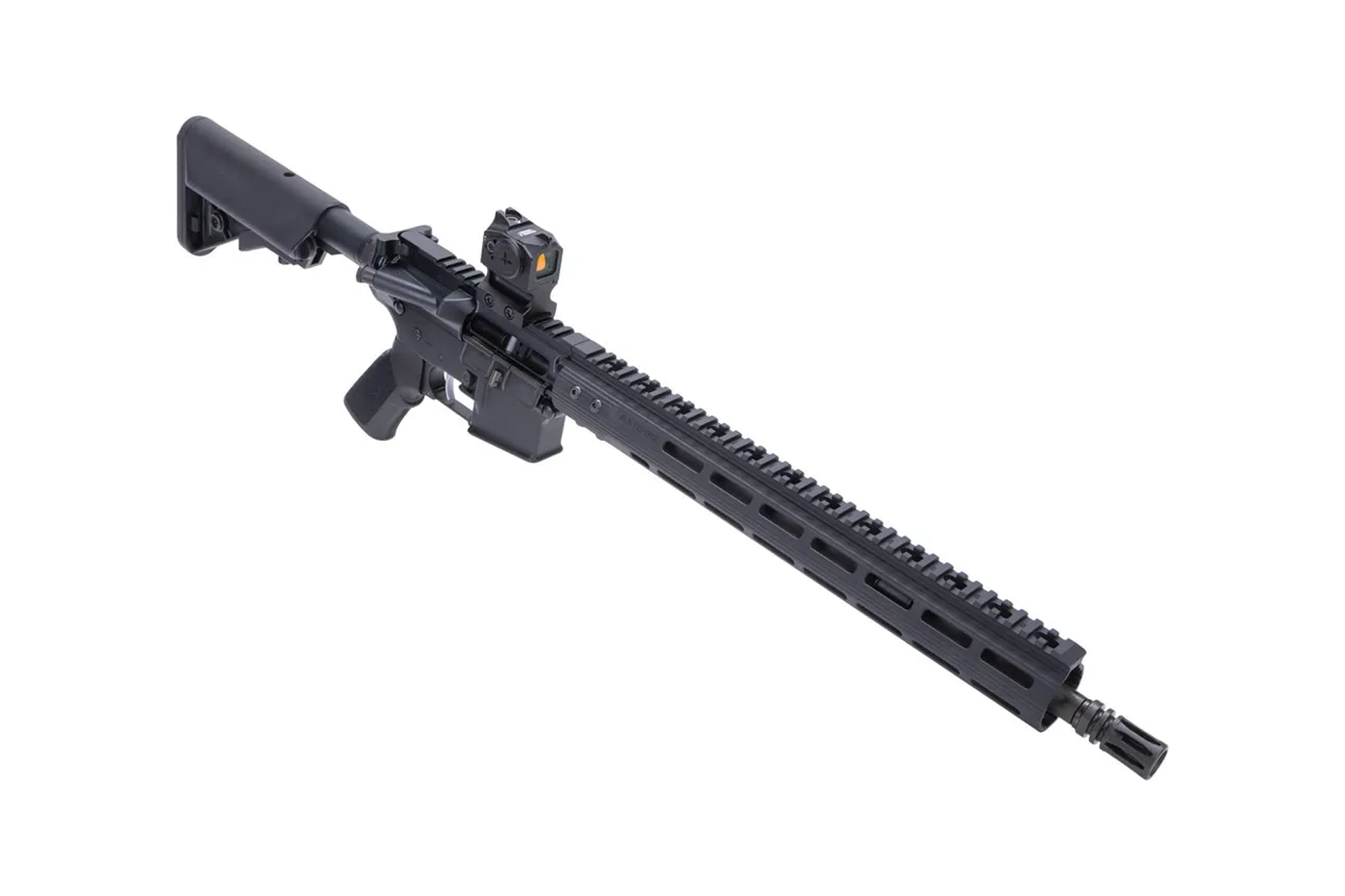 At the heart of the El Jefe lies the renowned ALG Advanced Combat Trigger, renowned for its smooth, crisp break, making every shot precise and controlled. The reciprocating bolt carrier group, crafted from Mil-Spec steel, delivers unparalleled reliability, while the button-rifled, chrome-plated 16” barrel ensures exceptional accuracy and longevity.