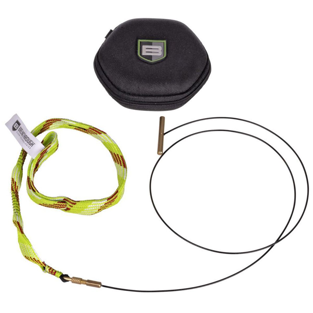 The Breakthrough Clean Technologies® Battle Rope™ 2.0 is the perfect on-the-go cleaning option for those needing a quick and efficient clean on the range. The newly upgraded design includes an integrated flip-out pull handle that doubles as a weight allowing the cable to easily feed through the barrel of your firearm. The integrated bronze brush (one for handgun, two for rifle & shotgun) scrubs away stubborn carbon, while the extra-thick rope wipes up residue for a superior clean. Easily detach the brass coupling from the flex cable to wash the rope. Store the Battle Rope™ 2.0 in its storage case and sling it in your range bag or clip it via its MOLLE strap or included carabiner.