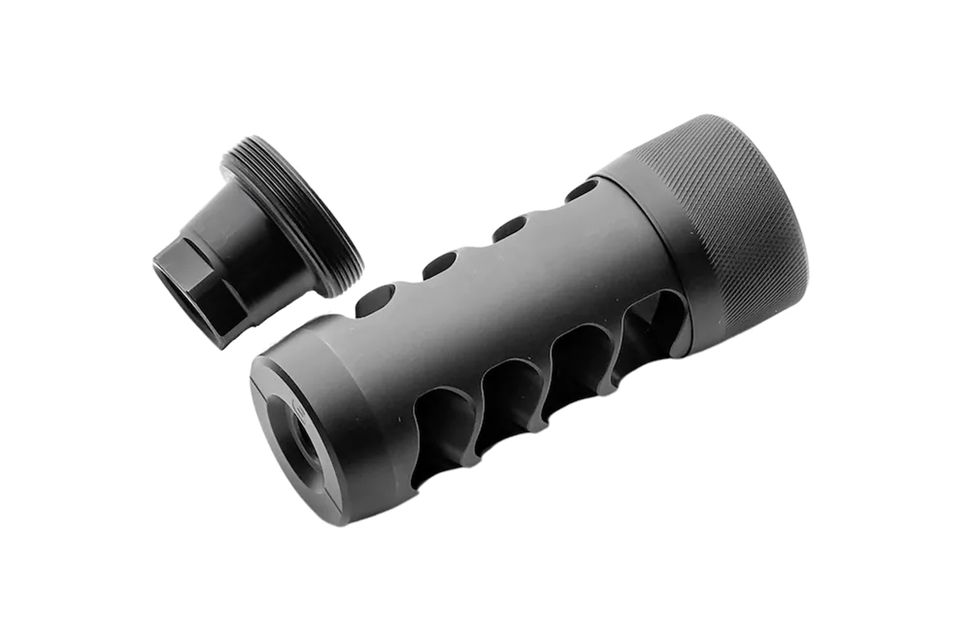 The Area 419 Hellfire Match Self Timing Muzzle Brake system is not just another knockoff copy of existing self timing brakes. It was engineered from the ground up to be extremely effective, easier to install, and much more versatile. This 4-port design isn’t simply stacking more of the same design on the end, it’s a complete redesign with each port being different. Different length ports, different angle ports, and different height port optimizes each one to provide an ideal function based on the pressure and volume of gas being acted on at its position. This results in optimal recoil management, optimal muzzle rise control, and imparts no extra sound pressure at the shooter position.