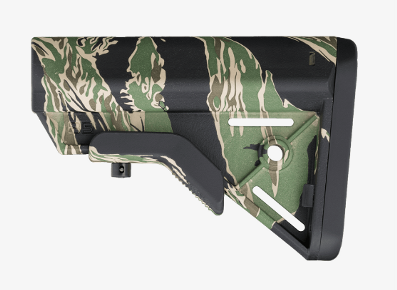 Building upon the success of the B5 Systems Enhanced SOPMOD, B5 has taken the features end users demand; offering them in a lighter, more compact, and stronger buttstock. The Bravo stock maintains the SOPMOD cheek weld, one piece anti-rotation quick disconnect sling mount, non-slip cushioned buttpad, and improved sure grip stock latch. The Bravo omits the storage capability of the SOPMOD to provide a slimmer profile and angles the rear of the stock ensuring quick and consistent stock placement against the shoulder and cheek. Made of Mil-Spec materials and finishes.