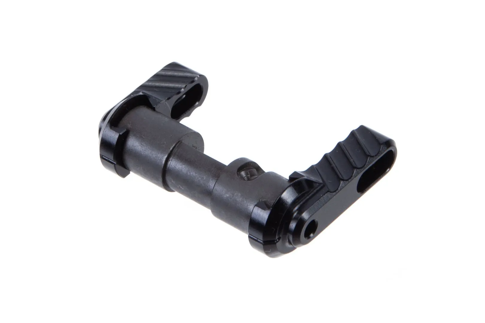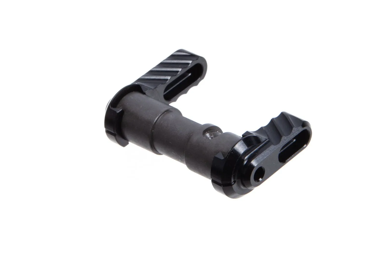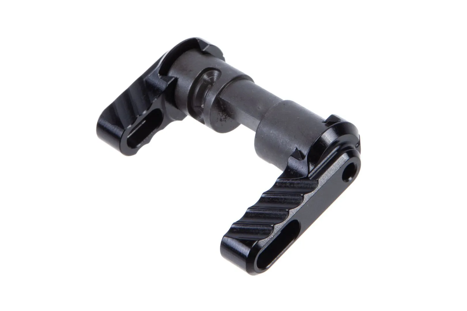 This professional grade, LIGHTWEIGHT semi-auto safety selector is the perfect upgrade to your AR-15. The CNC machined, billet 7075-T6 aluminum skeletonized levers are strong and lightweight. It comes standard with a precision SWISS CNC machined, reversible throw steel safety center core with 0°-90° and 0°-60° short-throw options. The standard and short aluminum safety levers are fully interchangeable and modular to accommodate left or right handed shooters.