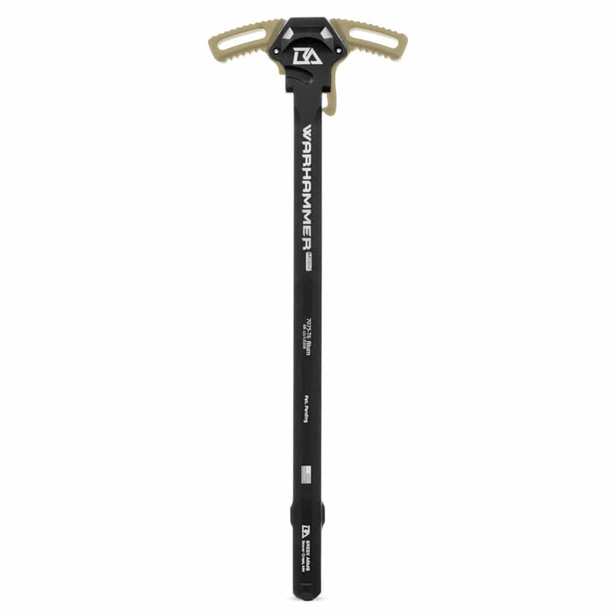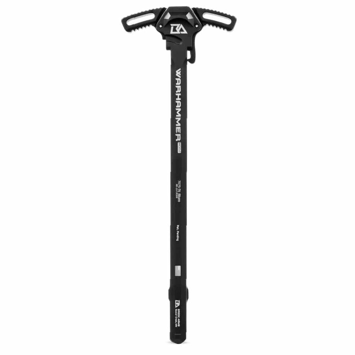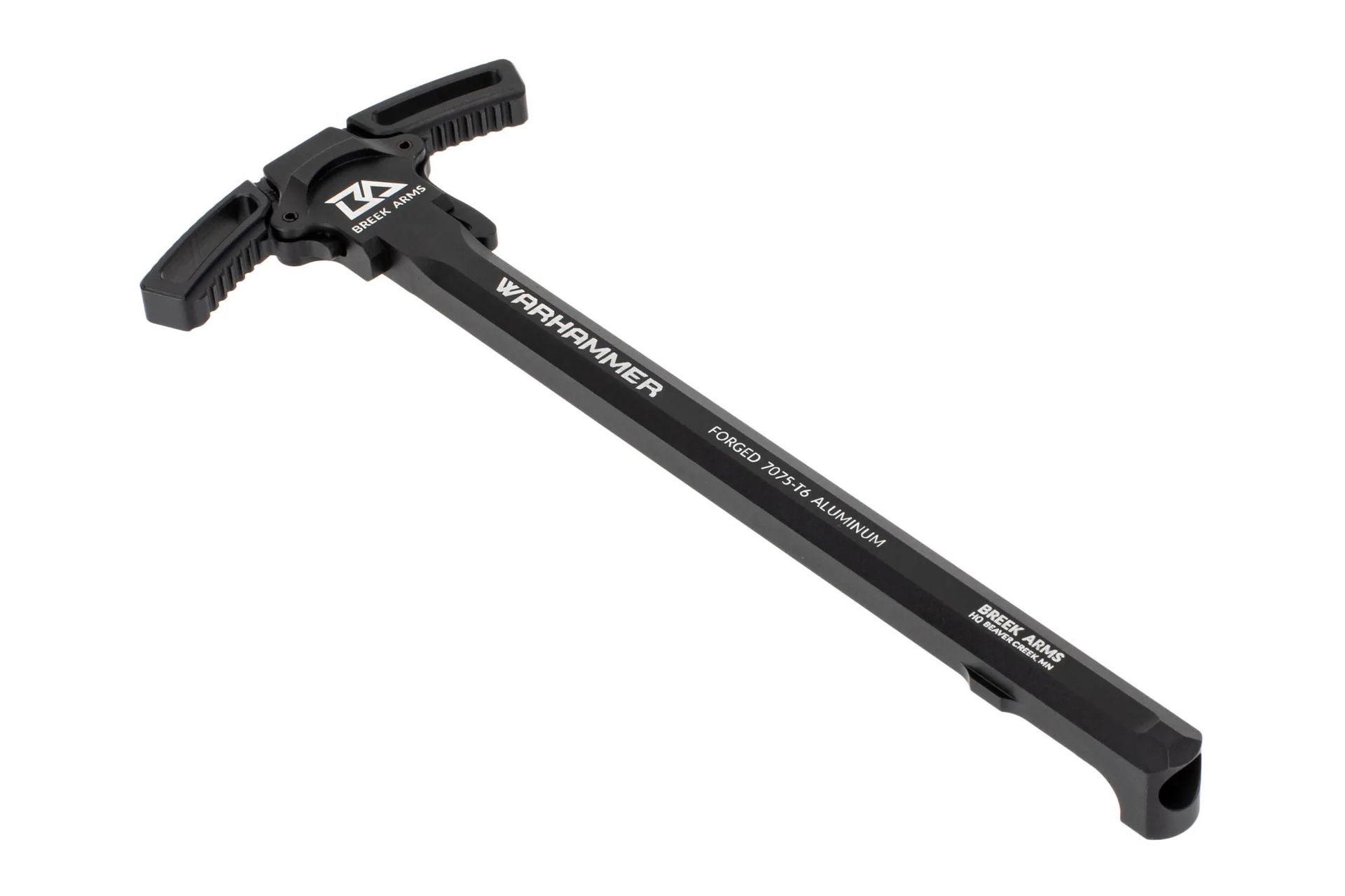 The Breek Arms WARHAMMER MOD2 ambi charging handle is a simple and affordable upgrade that will substantially increase the use of your AR-15. Easily grab on either side of the handle and you can quickly charge your rifle even with large gloves with the textured grooves that are cut into the latch handles. The wide set-back latches work great for large optics. The low profile design keeps it slim and sleek looking without sacrificing functionality. Made entirely out of 7075 aluminum for added strength and durability!