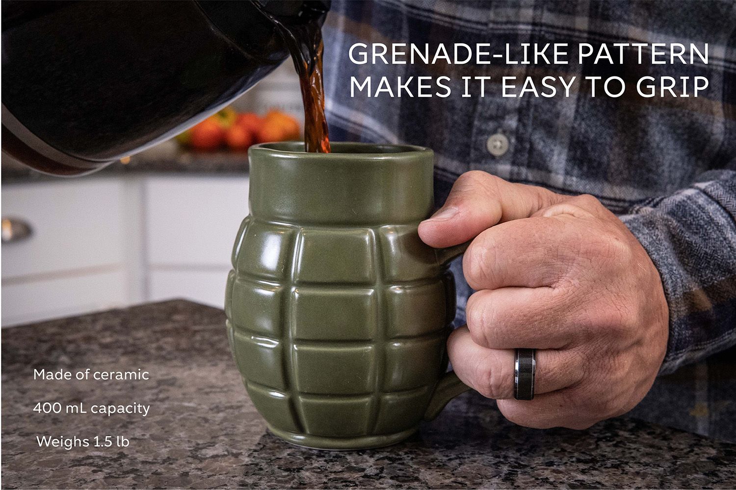 Need some backup? The Caliber Gourmet Green Grenade Mug packs a lot of space for your beverage of choice, offering a large volume of space for your precious morning caffeine drink. It’s ceramic construction is designed to keep your beverages at your desired temperature, and it’s grenade like pattern makes it easy to grip.