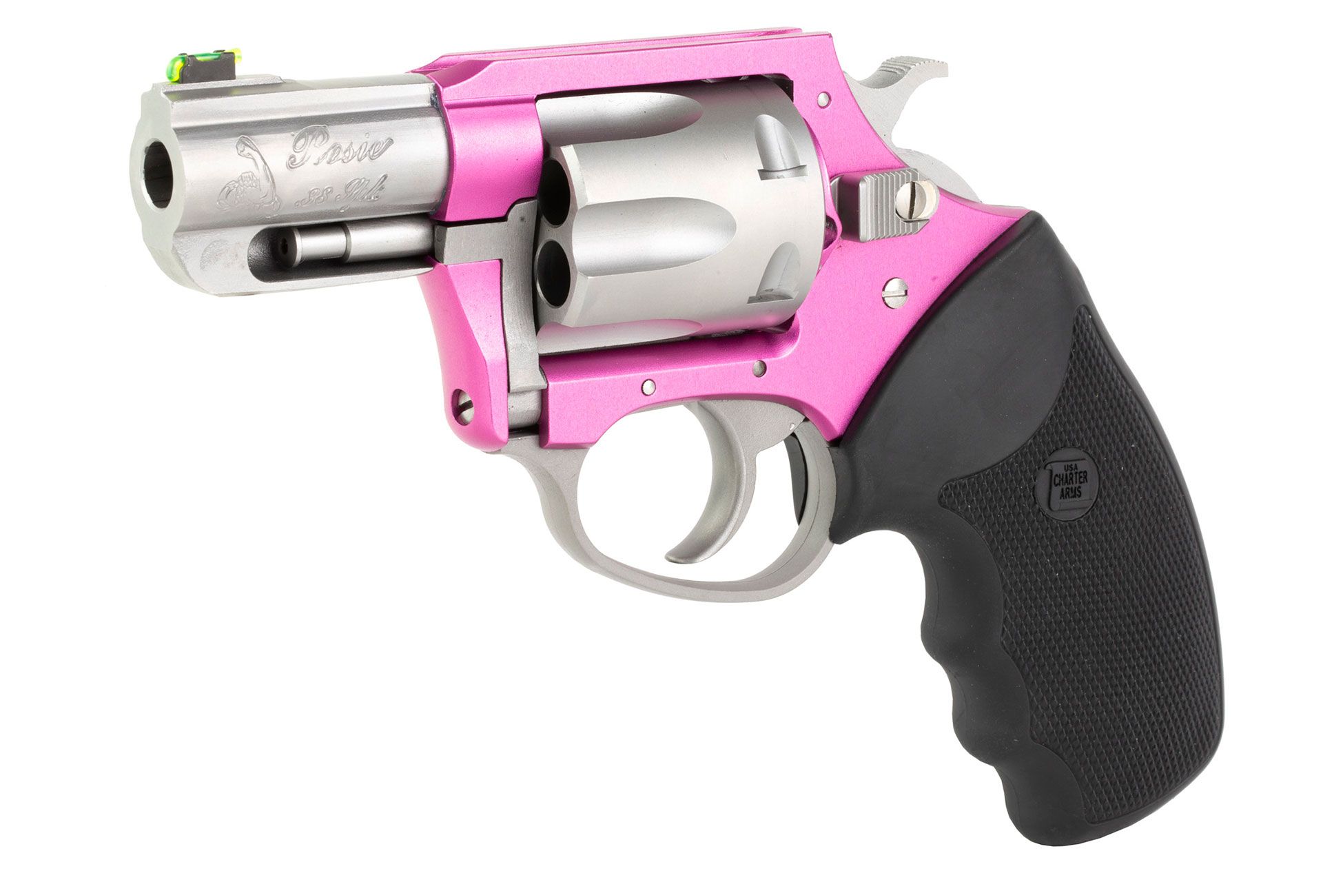 Constructed of tough aircraft-grade aluminum and steel, Charter Arms new Rosie model offers rugged reliability and comfort. This 6-shot .38 Special features a 2.2″ barrel, a fiber optic front sight and traditional spurred hammer.