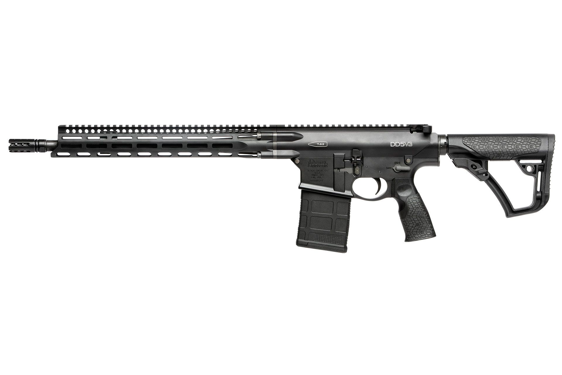 The DD5V3 includes an adjustable gas block that allows for a consistent feel whether shooting suppressed or unsuppressed. The perfected bolt carrier group reduces overall recoil impulse and is easy to maintain and operate in all conditions. Designed with an innovative 4-Bolt Connection System, this design dramatically increases the connection surface area between the barrel and upper receiver for increased rigidity/stability to wring out accuracy. The DD5 platforms have upgraded controls like ambi bolt catch, magazine release, safety selector and Daniel Defense enhanced furniture. Accepts All SR-25 magazines. *Note- CA Compliant have a feature requiring the shooter to pull the rear takedown pin out, breaking open the upper receiver and thereby releasing the magazine from the magwell. Accepts All SR-25 magazines. *Note- CA Compliant have a feature requiring the shooter to pull the rear takedown pin out, breaking open the upper receiver and thereby releasing the magazine from the magwell. Made in the USA.