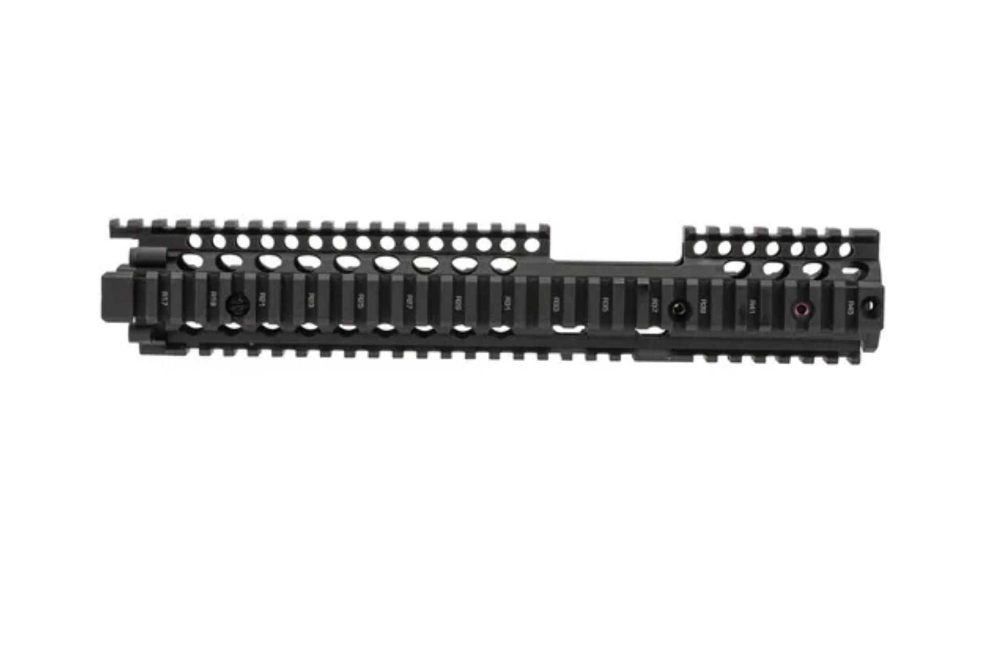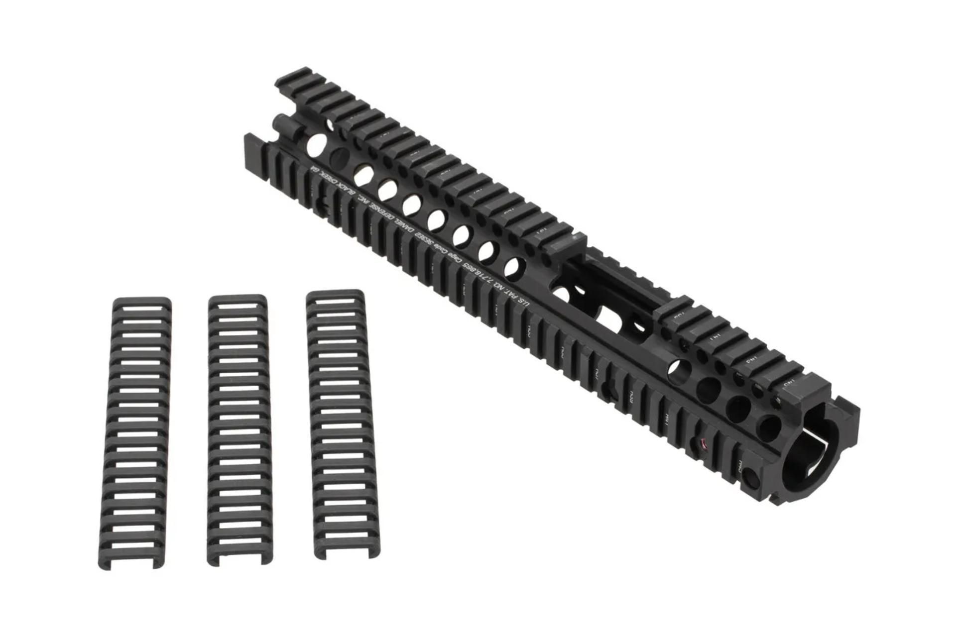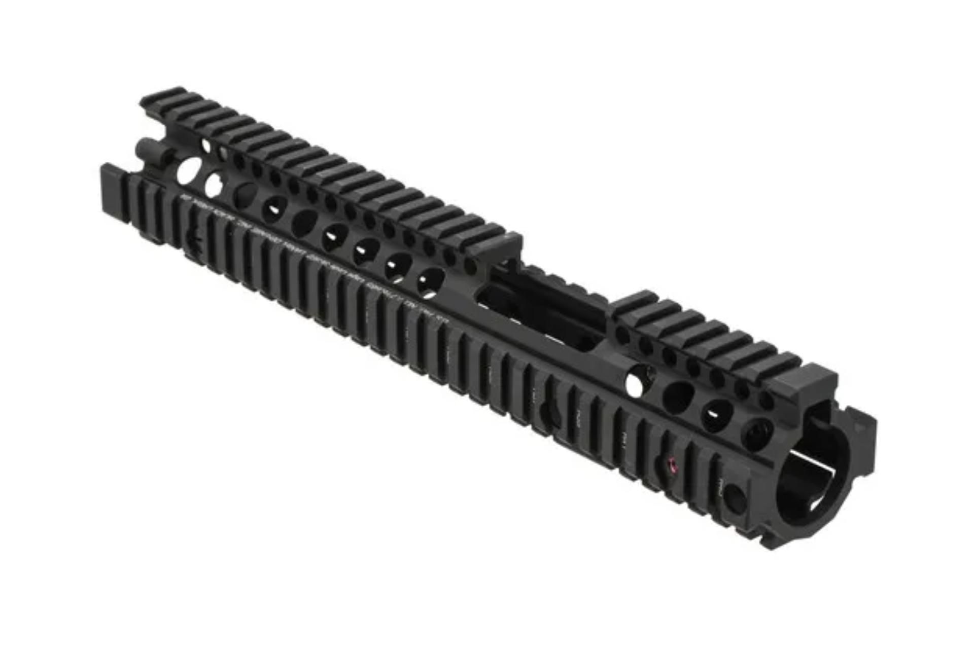 The Daniel Defense RIS II M4A1 freefloat handguard is one of the toughest and most effective rail systems for AR-pattern rifles available on the market to date. Utilizing their patented Bolt-Up barrel nut system designed at the behest of the United States Special Operations Command for the SOCOM II program, the M4A1 rail features an incredibly rigid two-piece design optimized for use with the standard M203 grenade launcher when the lower section is removed. Incredibly rigid when installed yet weighing in at just 17.7 Oz, the RIS II M4A1 free float quad rail is the perfect option for clone-correct builds or anyone looking for the toughest rail on the market.