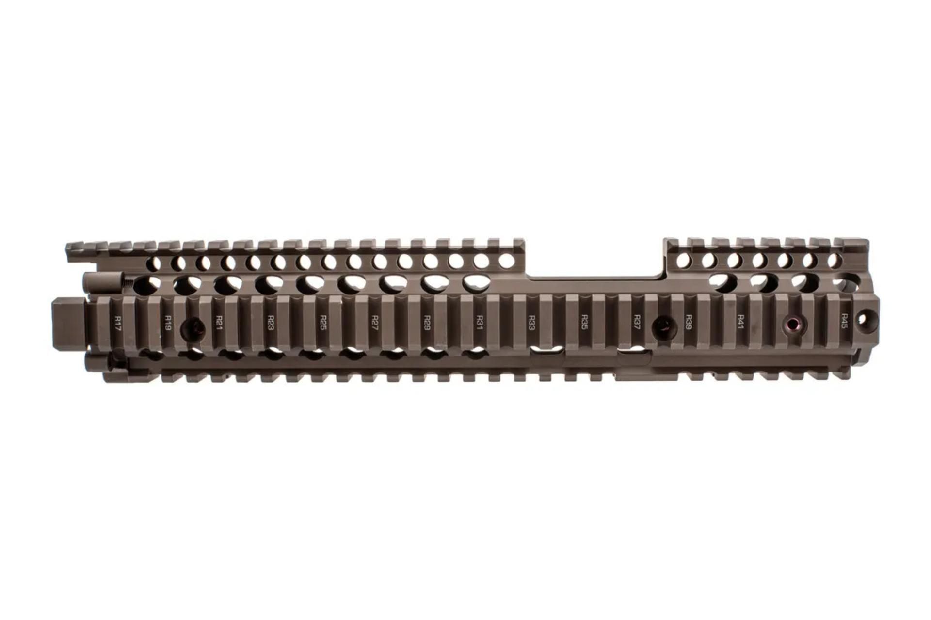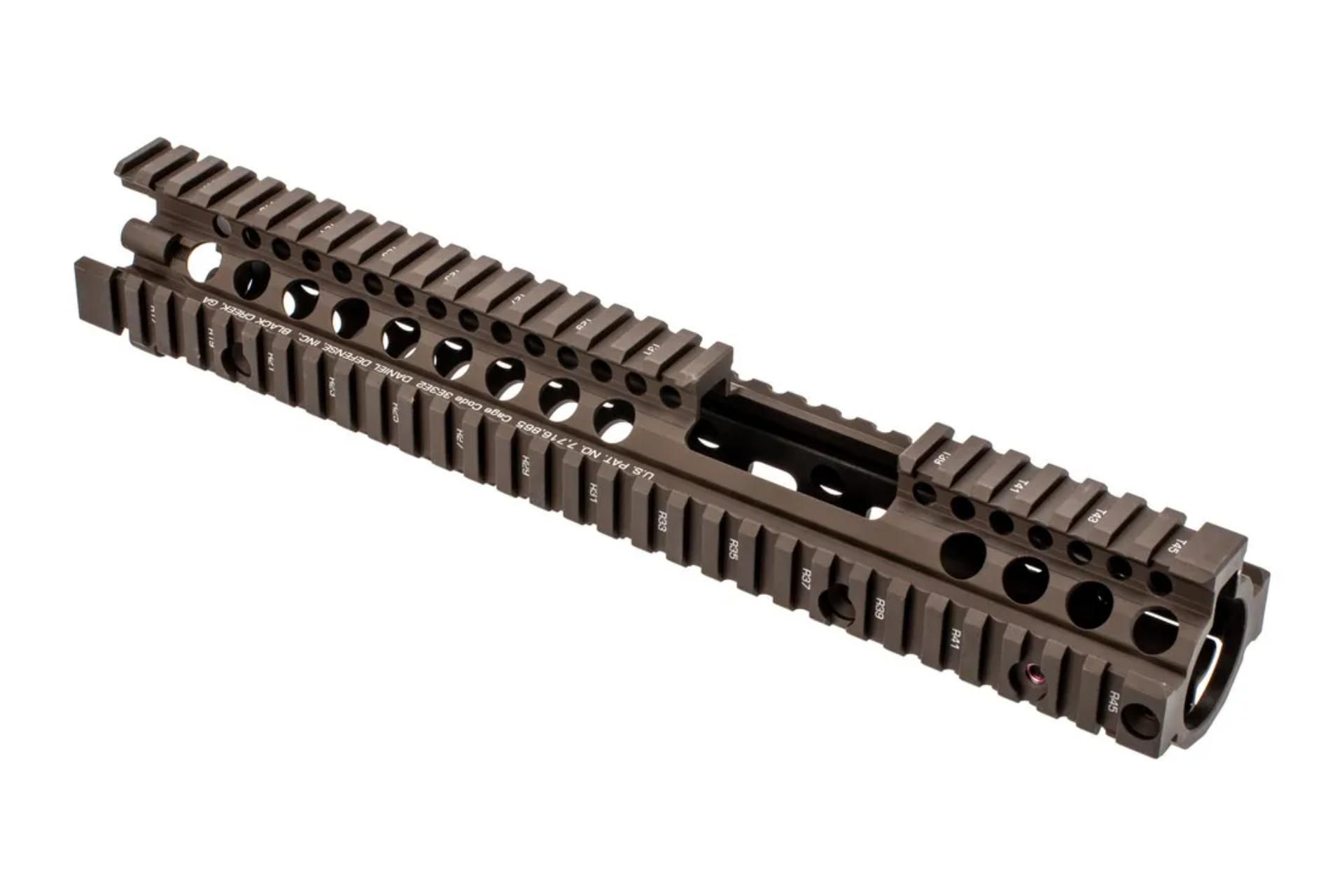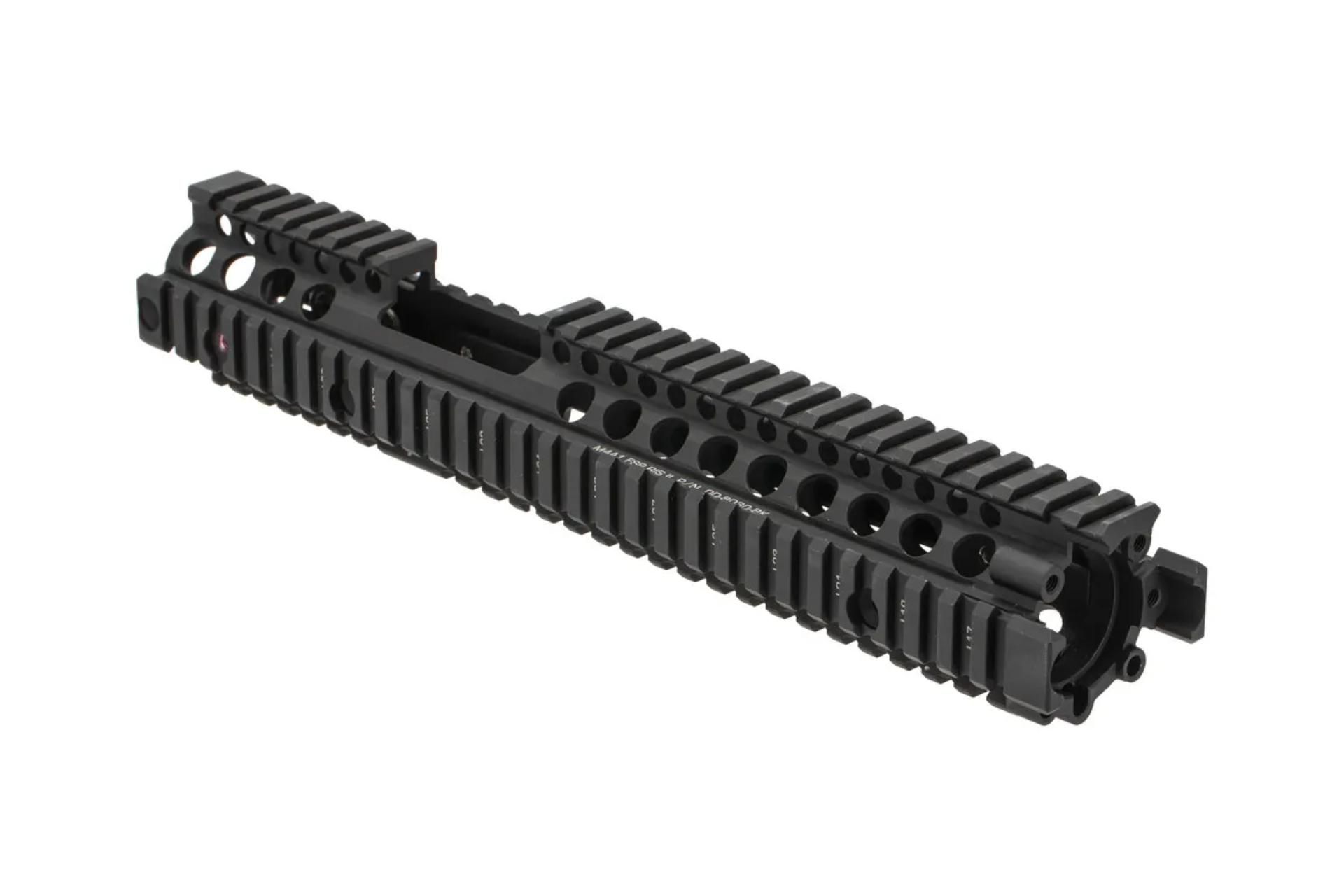 The Daniel Defense RIS II M4A1 freefloat handguard is one of the toughest and most effective rail systems for AR-pattern rifles available on the market to date. Utilizing their patented Bolt-Up barrel nut system designed at the behest of the United States Special Operations Command for the SOCOM II program, the M4A1 rail features an incredibly rigid two-piece design optimized for use with the standard M203 grenade launcher when the lower section is removed. Incredibly rigid when installed yet weighing in at just 17.7 Oz, the RIS II M4A1 free float quad rail is the perfect option for clone-correct builds or anyone looking for the toughest rail on the market.
