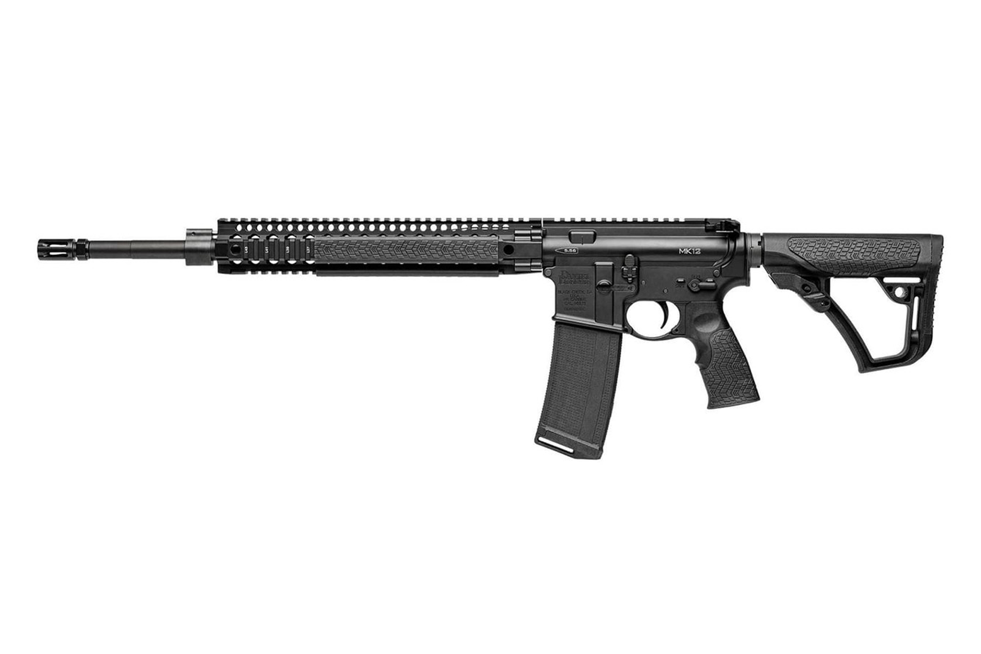 The MK12 is constructed around an 18-inch Stainless Steel barrel with a chamber created during the Cold Hammer Forging process, which ensures the most precise alignment of the chamber to the bore possible. This, along with being DLC finished, equates to unprecedented accuracy and durability. The MK12 barrel is engineered with a rifle-length direct impingement gas system and utilizes the MK12 gas block, which is built to Crane Specifications for USSOCOM. The MK12 gas block is precision CNC machined from 416 stainless steel and Black Oxide Coated. The rifle is fed with a M16 profile bolt carrier group and uses a BCMGUNFIGHTER Charging Handle for ease of operation. The upper receiver is equipped with a free floating DDM4 Rail 12.0 quad rail for allowing your choice of optics and accessories and is finished off with a Daniel Defense Improved Flash Suppressor.