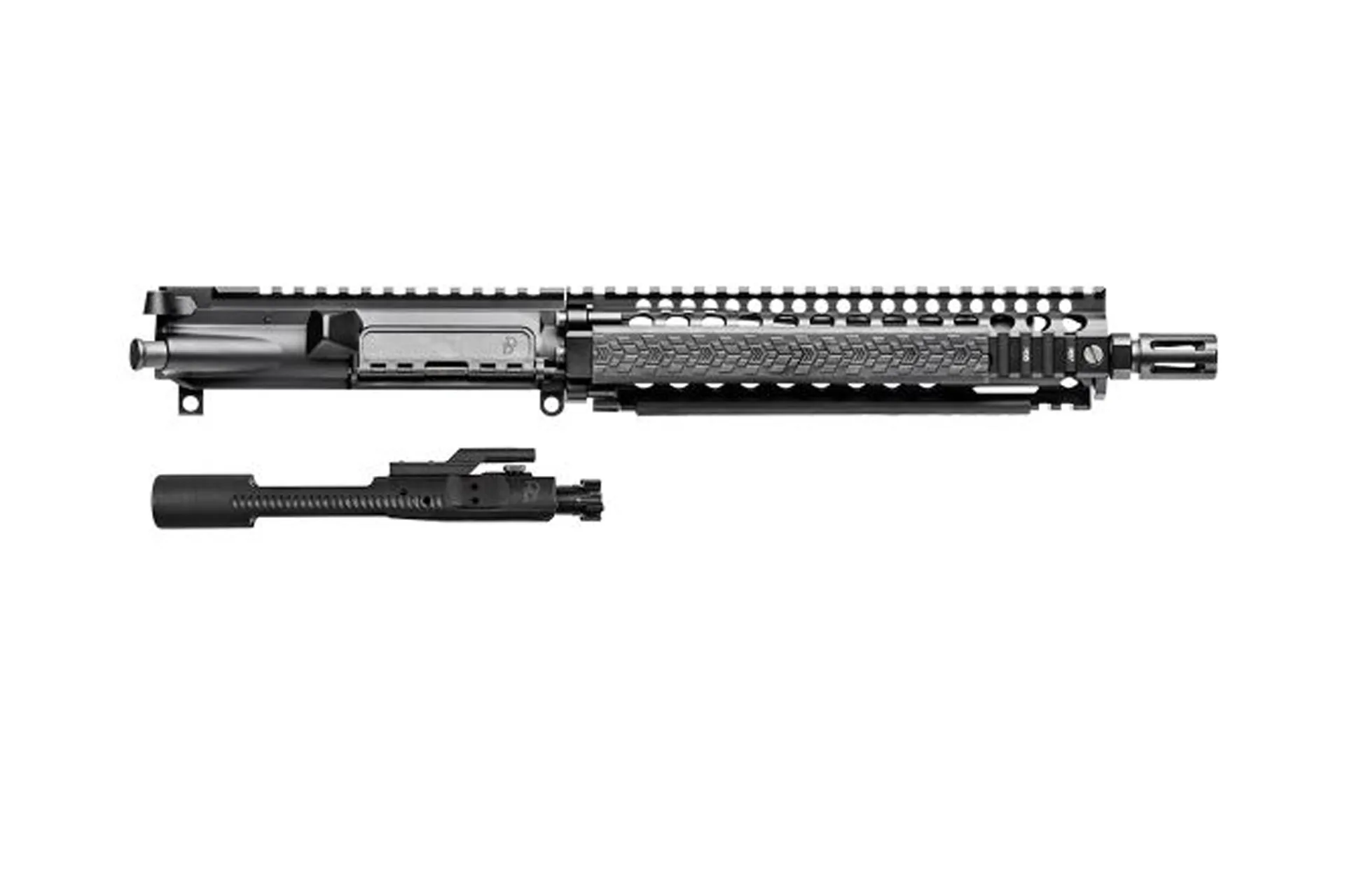 The MK18 AR15 style Upper Receiver Group is unmatched in size, weight, and performance, and features the picatinny quad rail Daniel Defense provides to USSOCOM. The RIS II rail features a Bolt-Up System that has been rigorously tested prior to fielding by USSOCOM. The 10.3 inch Cold Hammer Forged barrel is the same length in use for the MK18 upper most commonly used for CQB operations. Its independently ambi GRIP-N-RIP Charging Handle accommodates left- and right-handed shooters. All Daniel Defense complete upper receiver groups come standard with an M16 profile bolt carrier group.