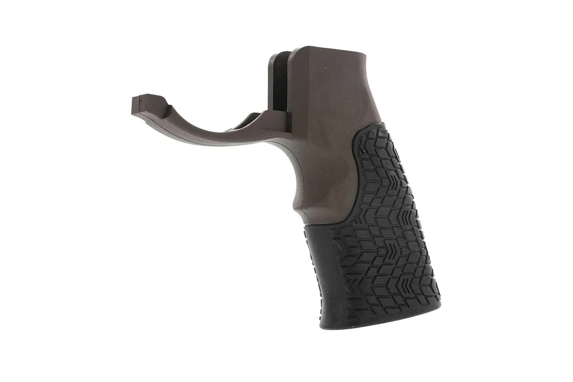 The Daniel Defense Pistol Grip combines a comfortable handfilling design with soft touch overmolding and the classic grip angle of the 1911 handgun. A natural grip angle, a glove friendly integral trigger guard, and all weather texture make this an excellent option for your AR-15. Includes grip screw and washer.