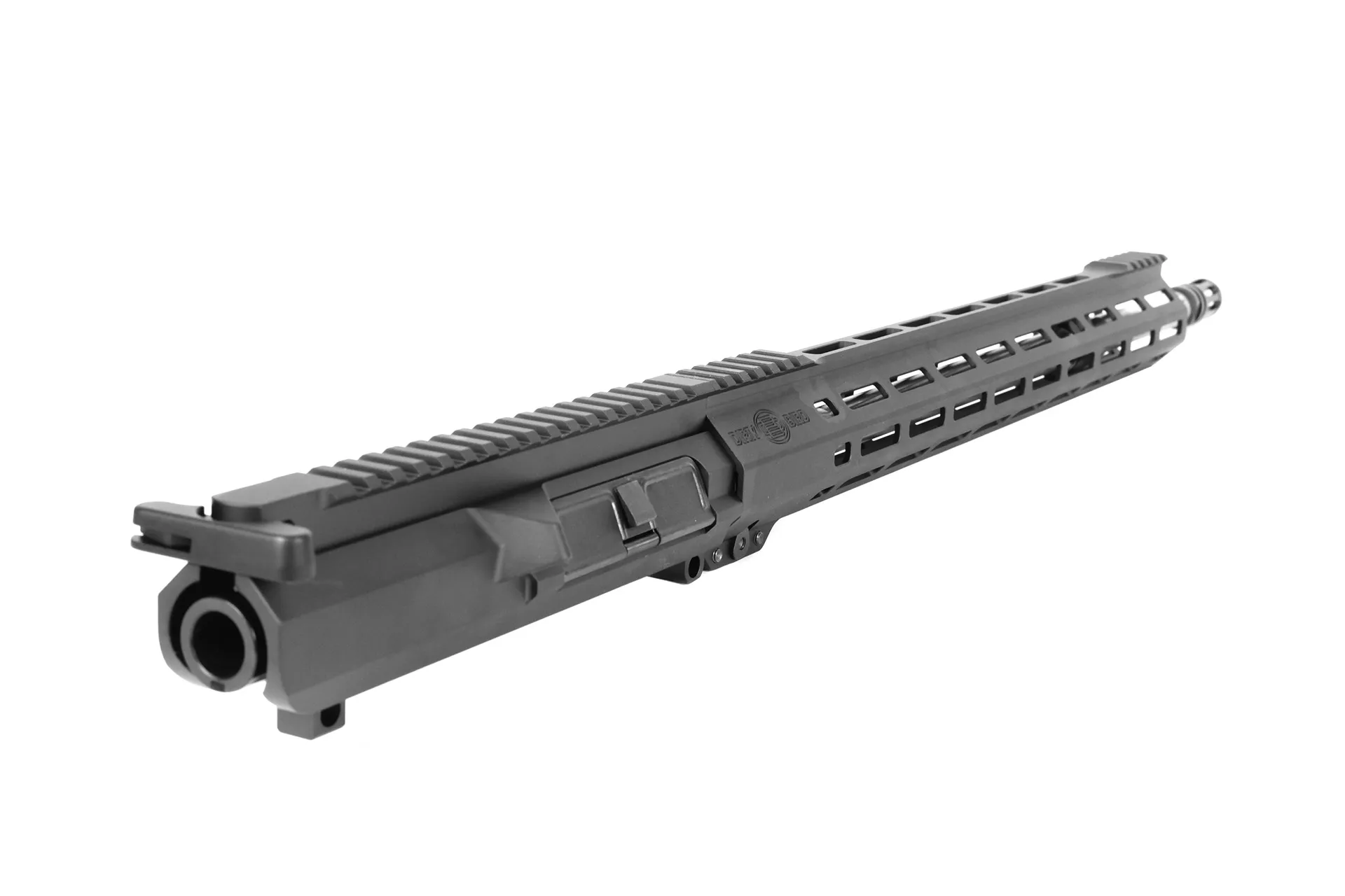 Built on a top-tier Forged Upper Receiver and finished with Dirty Bird’s 17.5″ AR-10 High-Profile SMRS M-LOK Handguard. No corners are cut when manufacturing these complete uppers. All barrels are dimpled and cold blued, use a black nitride 4140 steel gas block and a stainless steel gas tube. The gas block set screws feature knurled cone tops and are installed using blue locktite ensuring that no amount of firing will cause the set screws to come loose but they will still able to be removed for servicing if needed.
