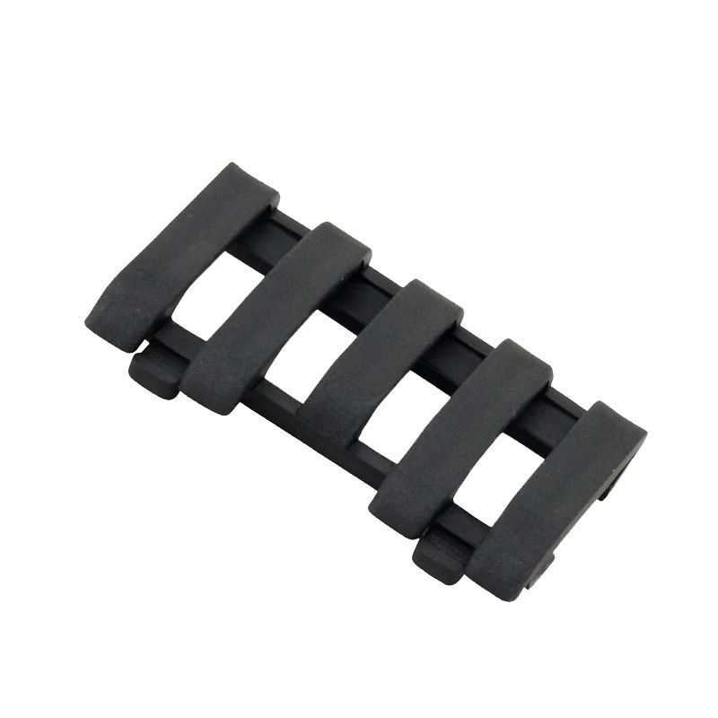 The ERGO Low 5 Slot Wire Loom Rail Covers quickly and reliably secures switch/optical wires to Picatinny rails.