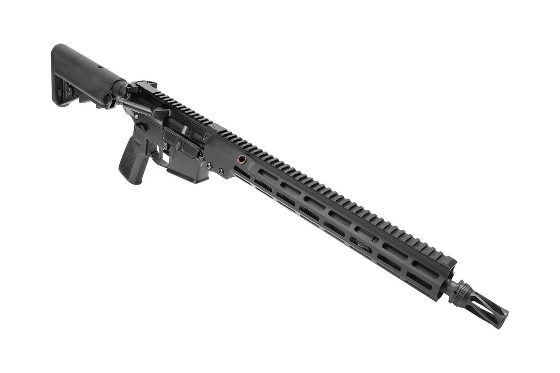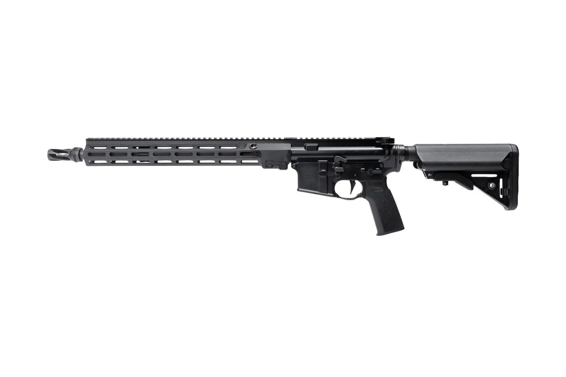 Rounding out the package is a selection of user-friendly components. The Super Duty lower is precision machined from 7075-T6 aluminum and houses Geissele’s Ultra Duty Lower Parts Kit, including an ambidextrous safety selector for easy manipulation by either hand. A mil-spec buffer tube with a Super-42 H2 buffer ensures proper cycling and recoil mitigation. The B5 Systems Enhanced Sopmod Stock provides a comfortable and secure grip, while the Airborne Charging Handle delivers smooth and reliable operation.