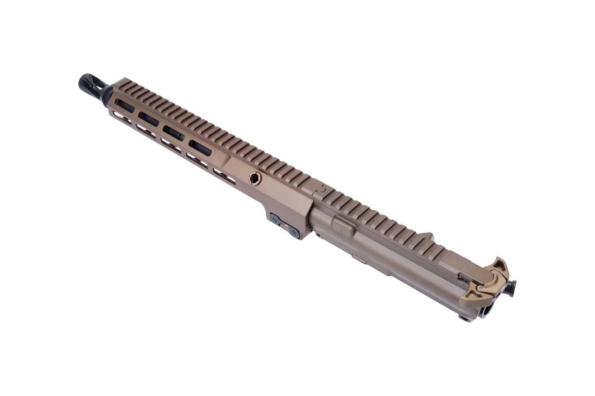 The Geissele Automatics Super Duty MOD1 5.56 NATO Complete Upper Receiver combines high-quality craftsmanship and performance with a 12.5” Cold Hammer Forged, chrome-lined barrel and a Nanoweapon-coated Reliability Enhanced Bolt Carrier Group. Both the barrel and Forged Stressproof Bolt® are HPT and MPI tested to ensure unmatched durability and accuracy. The precisely balanced gas system, including the bomb-proofed Super Gas Block and tuned gas port, reduces recoil while ensuring smooth cycling, even in harsh conditions. The MOD1 also features the Nanocoated HUXWRX Flash Hider-QD for compatibility with the HUXWRX FLOW series, a durable MK16 rail with stainless steel QD inserts for sling attachments, and an Airborne Charging Handle for ambidextrous, snag-free operation.
