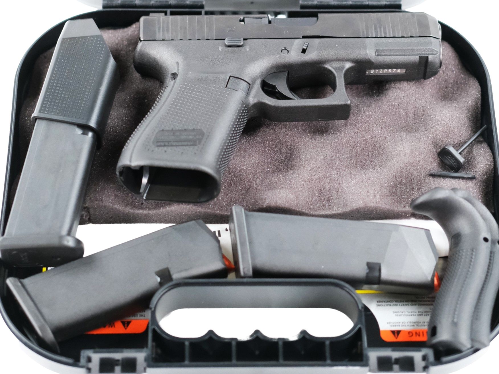 These are as New Glock 19 Gen 5 handguns. Department Trade Ins from North Carolina Department of Motor Vehicles License and Theft Bureau. Features include: Ameriglo Night Sights from the factory, exclusive NCDMV License and Theft insignia as well as the text “SERVING SINCE 1921” engraved on the top of the slide, 3 magazines, Blue Label original packaging, backstraps, and original manuals. As these are trade ins the guns may have minor cosmetic abrasions due to holster wear and duty use. All bores are mirror bright with no build up or signs of much use. All guns are in excellent condition internally showing little to no signs of use. The images are representative of the condition of the firearm you will receive but may not be the exact firearm you receive.