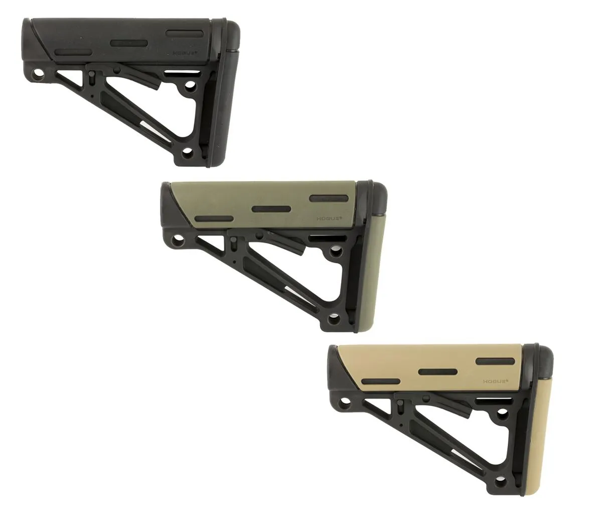 With soft touch overmolding and a snag-free, beard-friendly design, the Hogue Overmolded Collapsible Buttstock is a great addition to any build! Easy to install, replaces your existing buttstock in seconds. Rubber/polymer hybrid buttpad provides snag-free rifle shouldering. Reinforced polymer construction with overmolded rubber cheek rest. Rubber friction fit anti-rattle design prevents movement. Shielded operation lever. Multiple swivel sleeve & sling mounting locations.