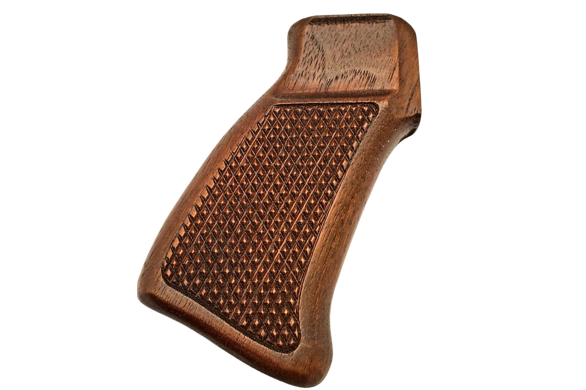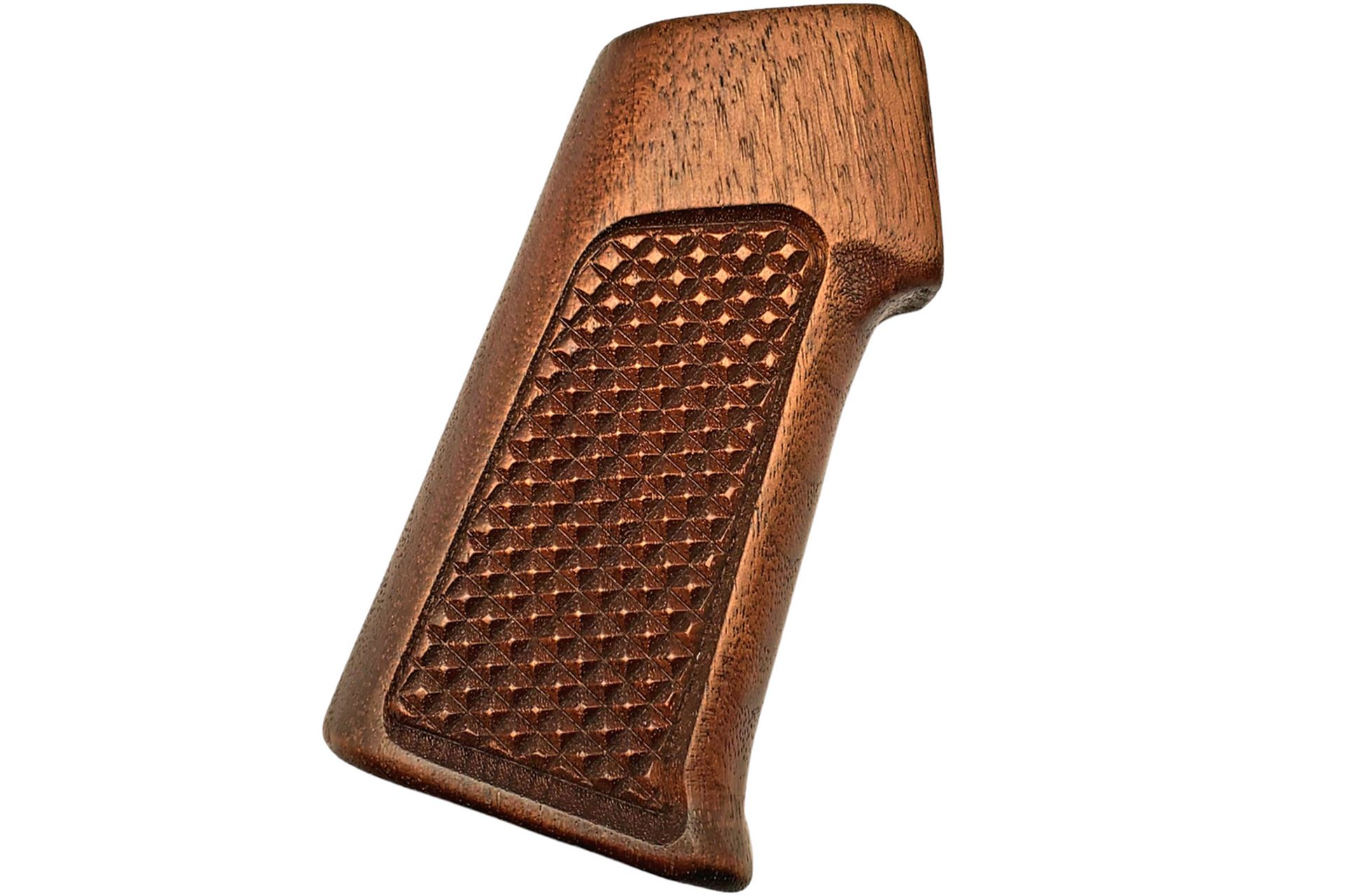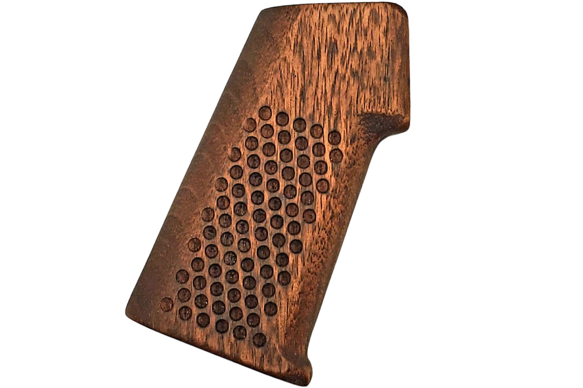The JMK wood AR-15 grip is available in multiple configurations to suit your preference. These grips will fit any firearm that uses an AR milspec lower.