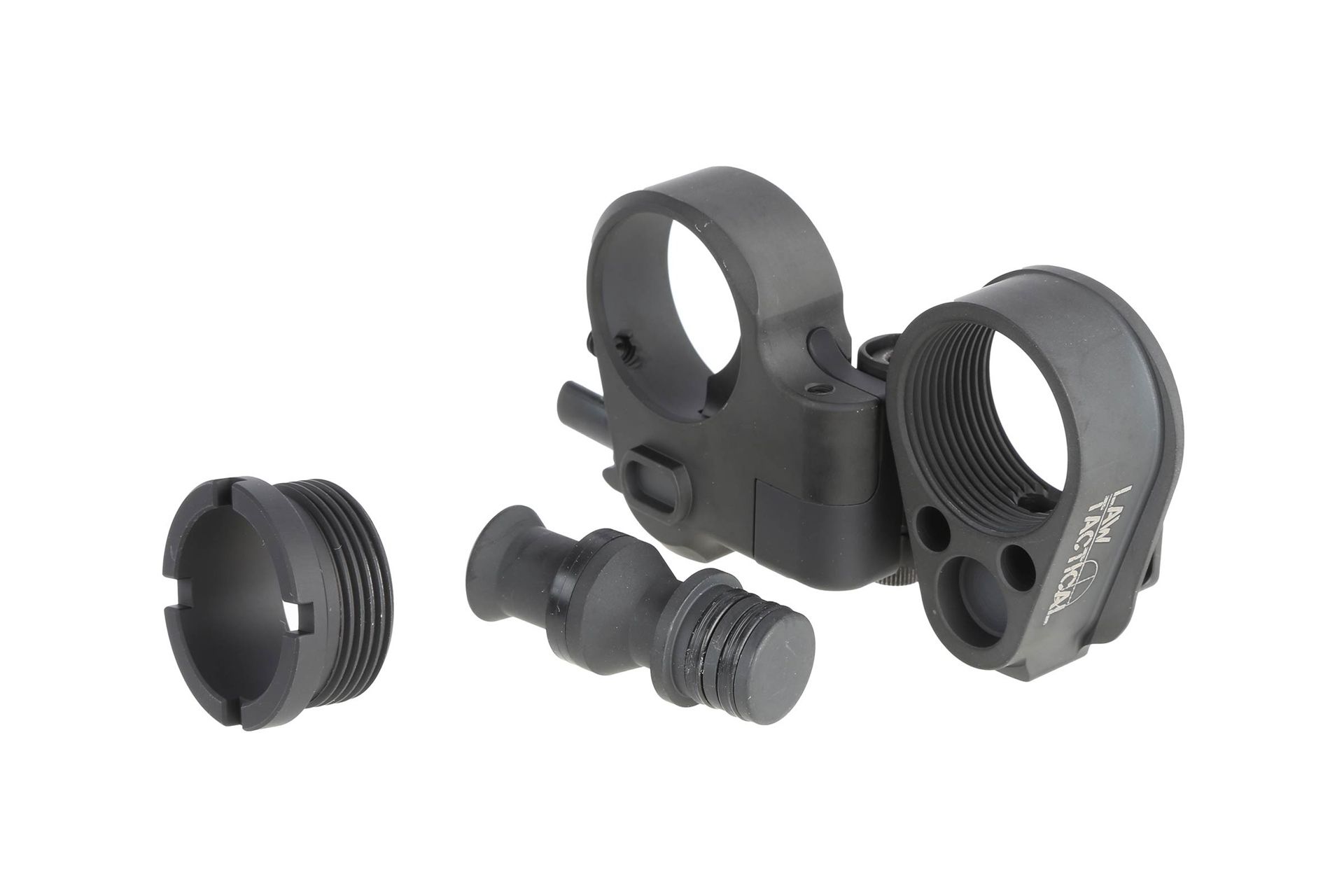 The Law Tactical Folding Stock Adapter works with direct impingement or gas piston systems and fits A2, carbine, mil-spec or commercial buffer tube and stocks. It can be used with standard bolt carrier groups including: full auto, semi auto, 5.56 to .308.
