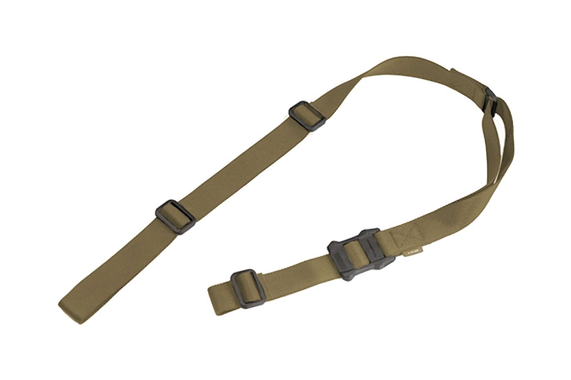 The MS1 Sling is the most versatile addition to the Magpul® line of rifle slings. This sling system starts as an optimized, dedicated two-point sling that serves equally well in a one-point role when using optional adapters. Built around our MS1 slider, this system provides rapid adjustments to either lengthen or shorten the sling with no slipping once set, and no tails, loops, or other potential snag hazards. In a two-point role, the MS1 allows easy shoulder transitions, rapid adjustability for hands free rifle carry and shooting support from various positions. The MS1 system also has a series of adapters that are sold separately and based on the MS3 and MS4 slings. By adding the appropriate adapter (available with Paraclip™ or QD Sling Swivel) for the sling, you can easily add one-point functionality to your MS1.