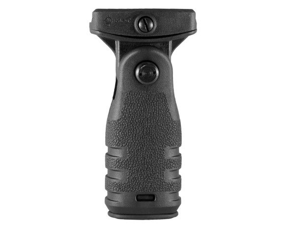A textured vertical grip that deploys in either a vertical or horizontal position and provides a positive grip surface. Allows the support hand to apply rearward pressure keeping the weapon shouldered, yielding better muzzle control and accuracy