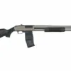 The Mossberg 590RM Mag-Fed Pump Action Shotgun brings high-capacity, rapid reloads to a proven tactical platform. Featuring a 10-round detachable double-stack magazine, this shotgun eliminates the need for manual shell loading, ensuring faster, more efficient operation. Designed for tactical and security use, it boasts an 18.5” barrel with an integrated heat shield for added protection. The ambidextrous rotary safety selector allows easy access without breaking grip, while the flat-profile trigger delivers a crisp, clean break. Stability is enhanced with magazine engagement ribs for a secure lockup, and the lever-style magazine release enables smooth reloads. The stock base adapter offers five LOP adjustments, is compatible with various stock and grip options, and includes two QD sling mounts. A top Picatinny rail supports optics, and the Magpul MBUS3 pop-up sights make a great back-up when your primary optic malfunctions. The front M-LOK adapter allows easy accessory customization, making the 590RM a versatile and powerful choice.