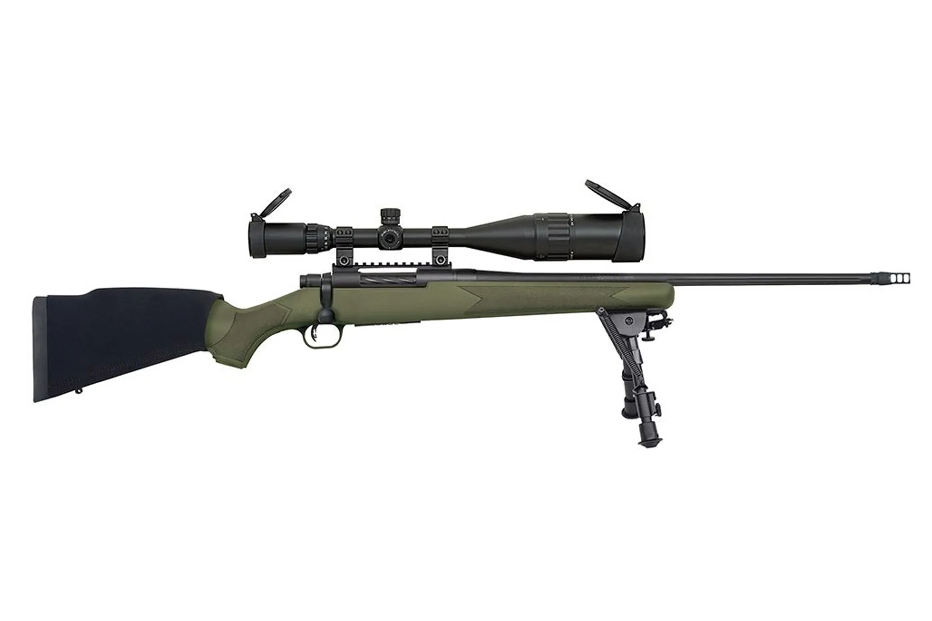The Mossberg Patriot Night Train Bolt Action Rifle is a specialized Mossberg package that is built around the revolutionary Patriot Rifle. All Night Train models include a drop box magazine, and feature Mossberg’s patented LBA adjustable trigger, Picatinny rails, fluted barrels, and packaged with an adjustable bipod and variable scope with lens cap. This Mossberg package comes with a suppressor-ready Night Train that includes a fluted, threaded barrel with removable SilencerCo Saker Trifecta muzzlebrake, and a neoprene cheek raising kit with interchangeable insert pads.