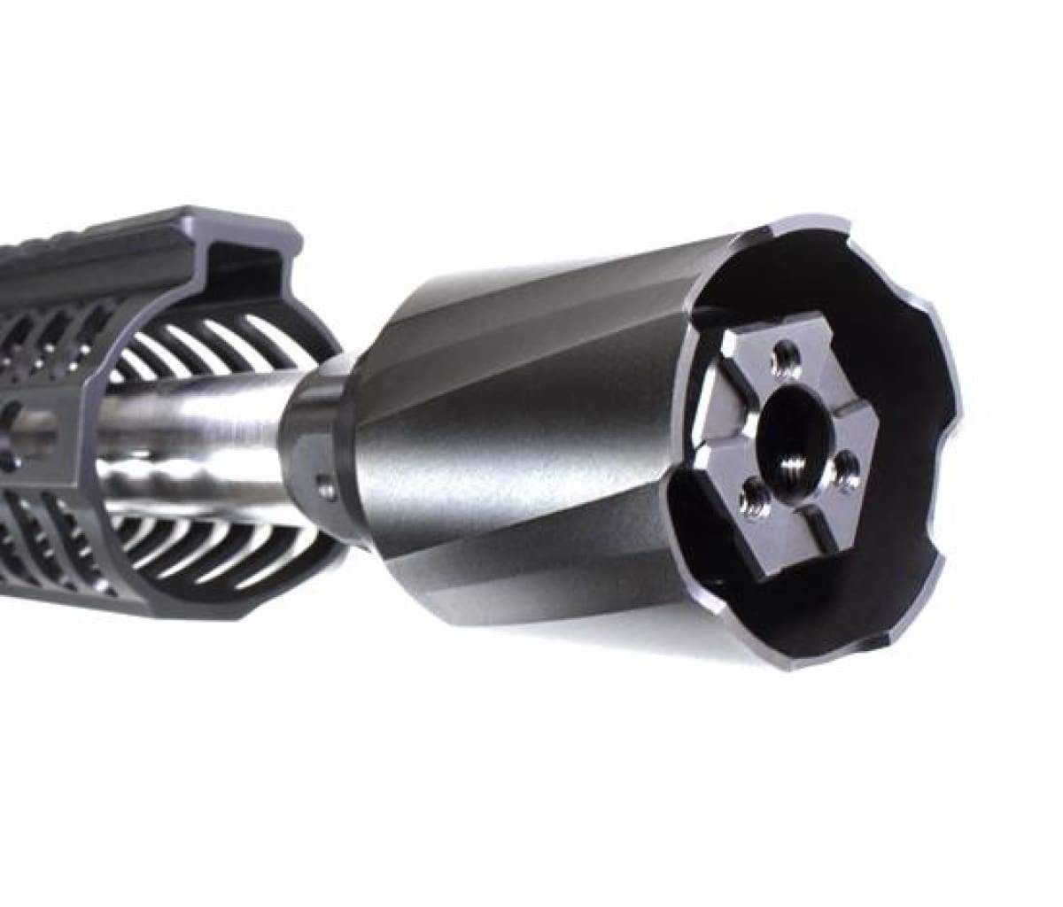 This easy to install blast shield is made of 303 Stainless Steel and it weighs just 1.75 ounces. The Atlas Blast Shield is available in the Black Nitride finish for protection from corrosion, fatigue strength, and resistance to wear., You can also get it in the Stainless-Steel finish to give your rifle that 2-Tone look. The Atlas Blast Shield is compatible with all ODIN Works ATLAS Compensators. On top of working great, the Atlas Blast Shield has a stylish, modern looking design.
