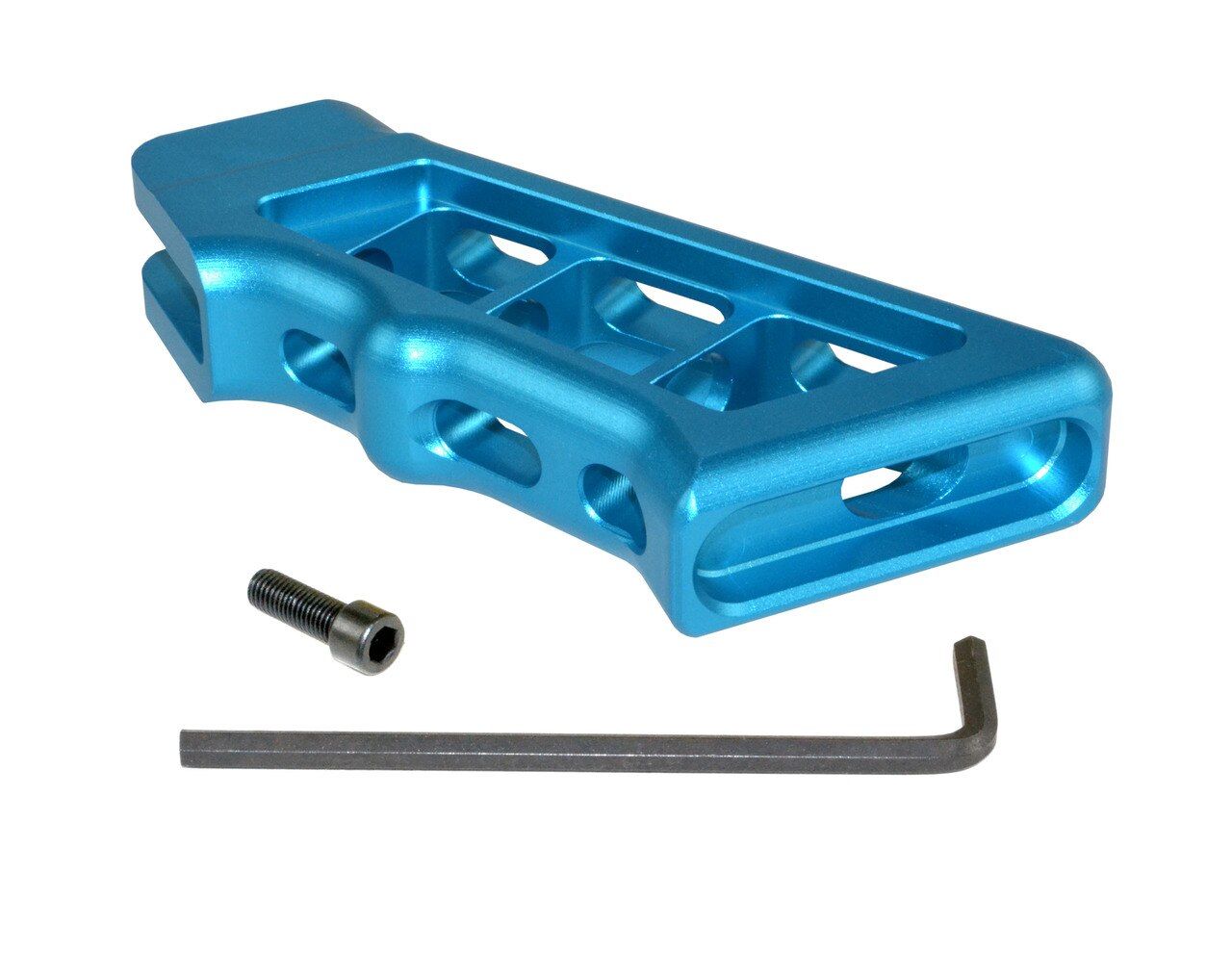 Fits AR-15, AR-10 and LR .308 Lowers. Super Strong Skeletonized 7075 Aluminum construction pistol style Rear Grip. Includes screw and hex wrench.