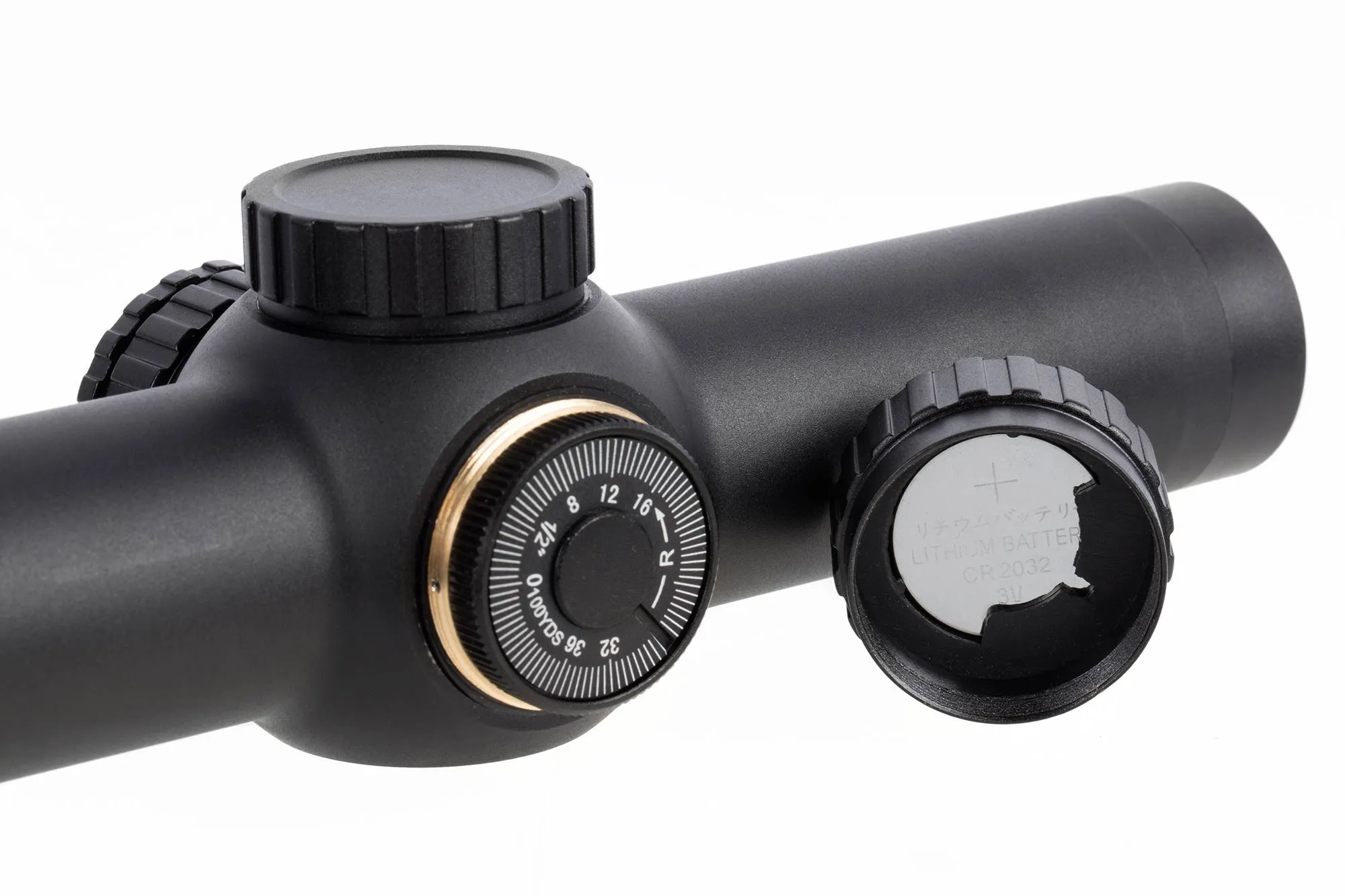 The brightness knob on the left side of the tube illuminates the center reticle through 12 brightness settings using the included CR2032 battery. This tough scope is waterproof, fog resistant, and covered by the Primary Arms Lifetime Warranty.