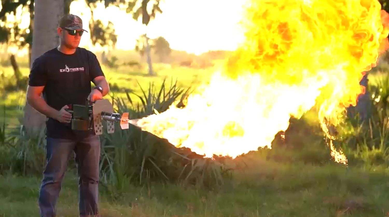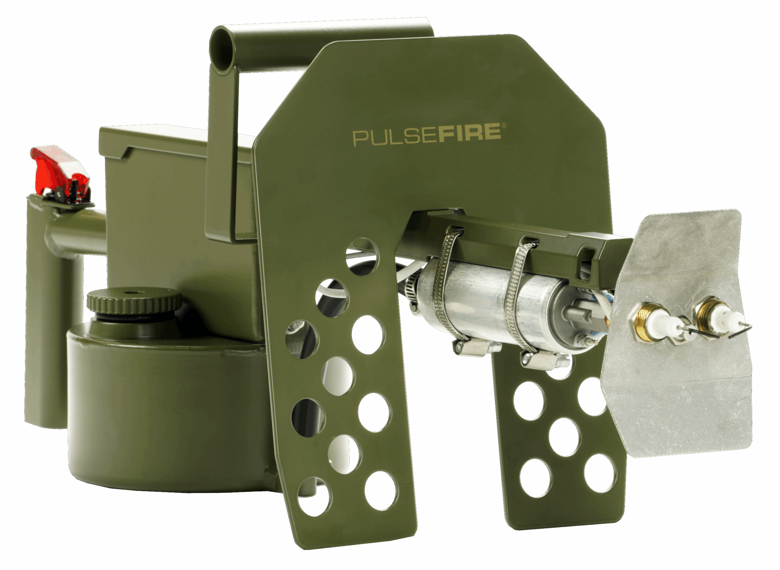 The patent-pending Pulsefire LRT is the ultimate compact, lightweight, fully handheld flamethrower that sends a blast of fire 25 feet away with the press of a button. Constructed primarily of aluminum, the Pulsefire is compact and easy to handle only 6 lb empty. When the voltage is low, the system will disable the trigger, letting you know its time to charge or change the battery. Easy thumbscrew access to the battery compartment lets you charge or swap out your battery in seconds. Alternative nozzle designs can provide alternate stream options or California law compliance. Use for bonfires, snow & ice, weeds, insect hives, agriculture, pyrotechnics, forestry and film & TV. Includes battery, battery charger and user manual. *This version of the Pulsefire LRT contains a fan-type nozzle which is designed and intended to limit any ignited streams length to under ten feet to comply with CA regulations at the time of manufacture. This nozzle may only be removed if authorization/license is obtained by the state fire marshal, or if the user is outside of California.