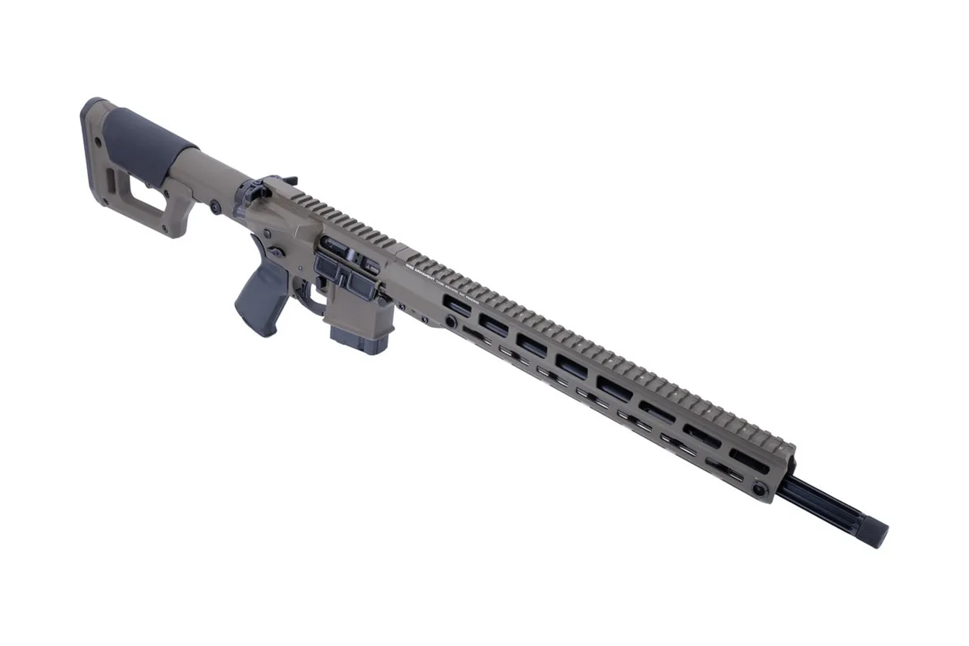 The Rise Armament WatchmanXR 6 ARC AR-15 Rifle in Patriot Brown is designed to deliver exceptional accuracy and versatility. It features a premium 18-inch 416R stainless steel fluted barrel and a rifle-length gas system, ensuring consistent performance with a 6mm ARC caliber. The free-floating skeletonized aluminum handguard, with its patent-pending attachment lock, helps maintain zero, providing a stable platform for precision shooting. The rifle is equipped with the ICONIC by RISE independent two-stage trigger, offering a smooth and controlled trigger pull, ideal for both hunting and competitive shooting.
