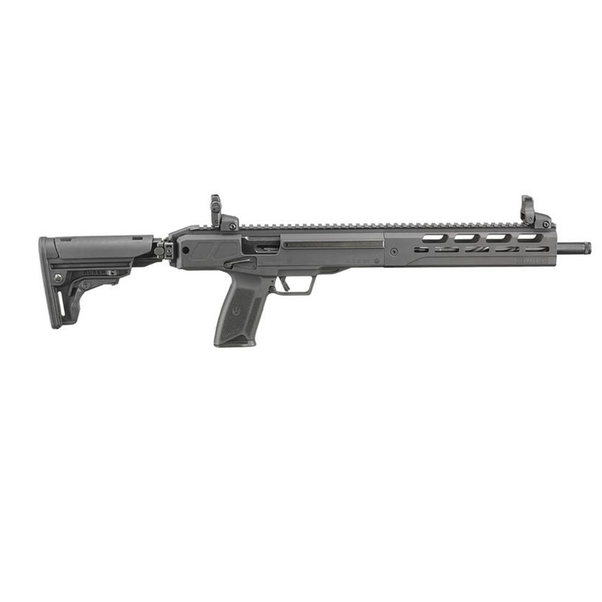 This model features a threaded barrel, reversible, side-folding, adjustable stock and 20-round magazine. Weighing under 6 lbs., the lightweight and compact Ruger LC Carbine utilizes the same steel magazines and familiar ergonomic controls as the Ruger-5.7 pistol.Unique bolt-over-barrel design with the magazine in the grip allows for excellent balance and pointability. Folding stock and collapsible sights are ideal for compact storage.The reversible folding stock, with adjustable length of pull, is compatible with both AR-pattern and Picatinny rail-mounted aftermarket accessory stocks.Features a 16.25″ fluted, nitride-treated steel barrel for strength, accuracy, and longevity.1/2″-28 TPI threaded barrel with thread protector allows for the attachment of popular muzzle accessories including muzzle brakes, flash hiders and caliber-appropriate suppressors. Impressive ergonomics with ambidextrous manual safety, reversible charging handle, ergonomic bolt release and extended magazine release latch.