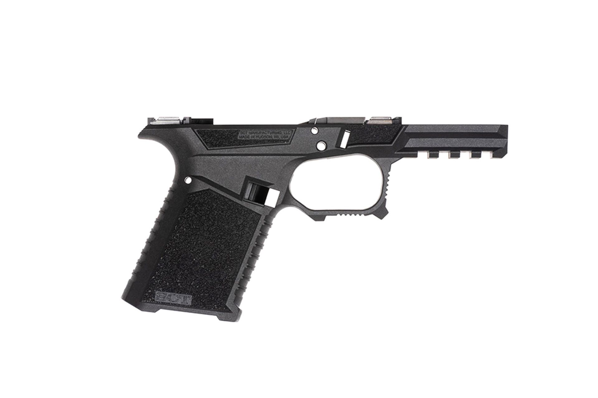 The SCT Manufacturing SCT 19 makes a great pairing with your Gen1-3 GLOCK slide. When putting together a GLOCK build, there are now so many options for frames due to how incredibly popular the pistol platform has become, and for good reason. The SCT 19 Frame leaves little to be desired. This frame is loaded down with anything you could want. Stippling has become very common for polymer-framed pistols because it greatly aids in recoil control, especially with wet hands, however, you will not need to send this one off. The SCT 19 features an aggressive grip with its Ladder Traction front and back strap, serrations on the front of the trigger guard, and aggressive accelerator thumb pads. Apart from the very helpful grip textures, they have included a 1913 Picatinny rail to mount any of your favorite lights or lasers and an undercut trigger guard allowing you to get higher up on the gun. SCT thought of everything when designing this frame even, including things like a flared magwell that is compatible with Magpul’s GL9 magwell and serrations on the beavertail for reduced glare. If you often shoot with gloves, you will love to know that they even enlarged the trigger guard for easier use. If you looking to build a new competition or carry gun you cant go wrong with the SCT Manufacturing SCT 19 Frame.
