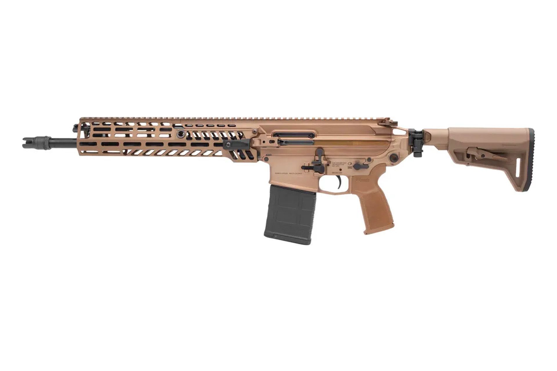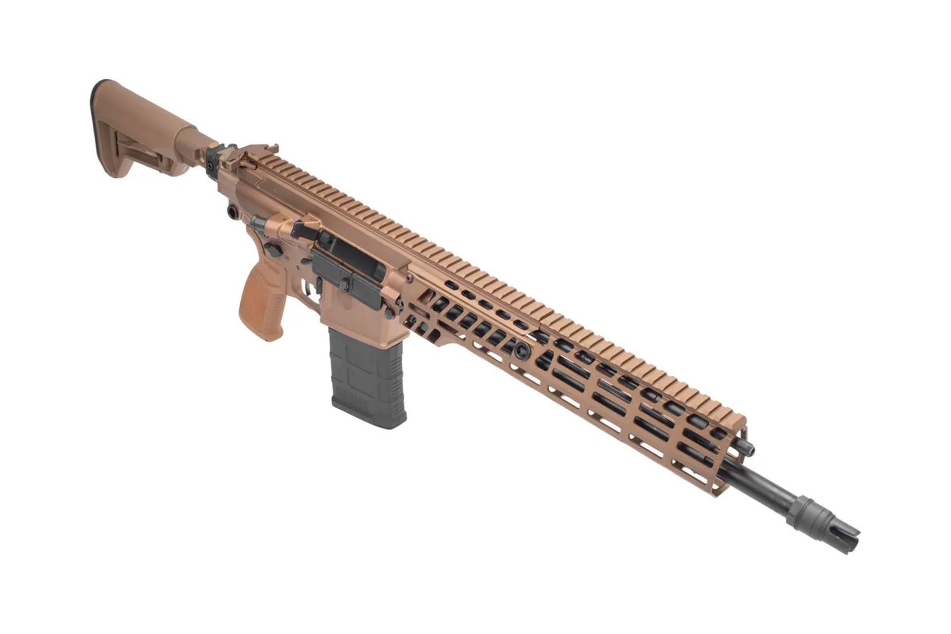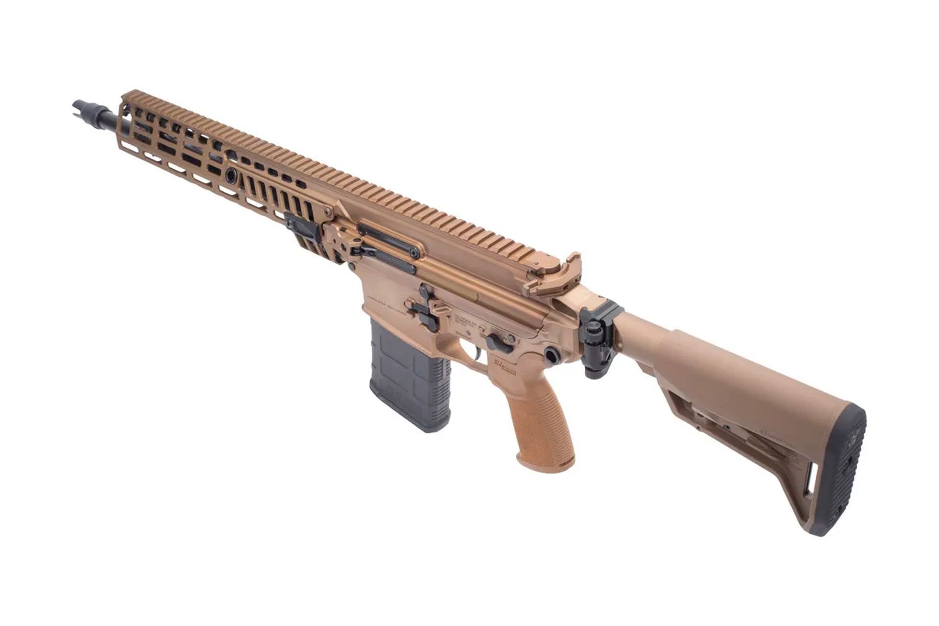 The SIG Sauer MCX SPEAR expands on the success of the MCX platform by fulfilling the demands of the community. SIG listened closely and delivered by adding a ton of new features a that users have been asking for. SIG updated their lightweight handguard to be more slimline, added fully ambidextrous controls, and are now compatible with standard AR-15 style triggers allowing for even more customization. However, even though you now have more trigger options you may not want to change it out, the included match trigger features a light pull with a slight take-up, a well defined wall, and a clean break. The new fully ambidextrous lower receiver is a huge benefit allowing you to easily manipulate the fire selector, magazine release, and the bolt release no matter what your strong hand is. Most notably, the new handguard reduces weight with a slimer profile improving ergonomics and the improved attachment method helps to increase rigidity allowing you to take full advantage of the accuracy from the lightweight profile barrel. The SIG MCX SPEAR features a coyote brown anodizing and will make a great addition to your collection.