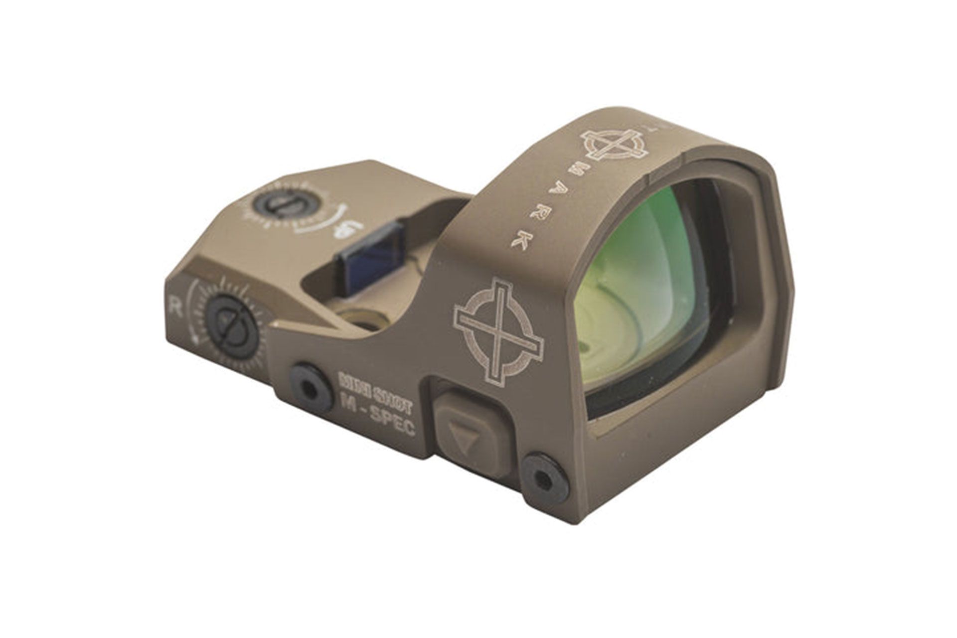 This compact reflex sight is an ideal optic for tactical simulations, competition shooting and home defense. The Mini M-Spec in dark earth is one of the most reliable compact sized optics available. The kit includes a low-profile mount fixed mount for pistols and shotguns along with a riser mount for AR platform rifles. Work your optic in virtually any environment, from daytime to low-light conditions complete with the 3 MOA red dot reticle with added ambidextrous switch controls to benefit both left- and right-handed when adjusting through 10 brightness levels. The Mini M-Spec boast a coated and scratch resistant lens, are 100% waterproof and features a durable aluminum housing with a steel protective shield. The Mini Shot M-Spec’s extremely low power consumption provides 300-30,000 hours of battery life on one CR1632 battery, while its 12-hour auto shutoff prevents the unit from running out of batteries while you’re not using it.