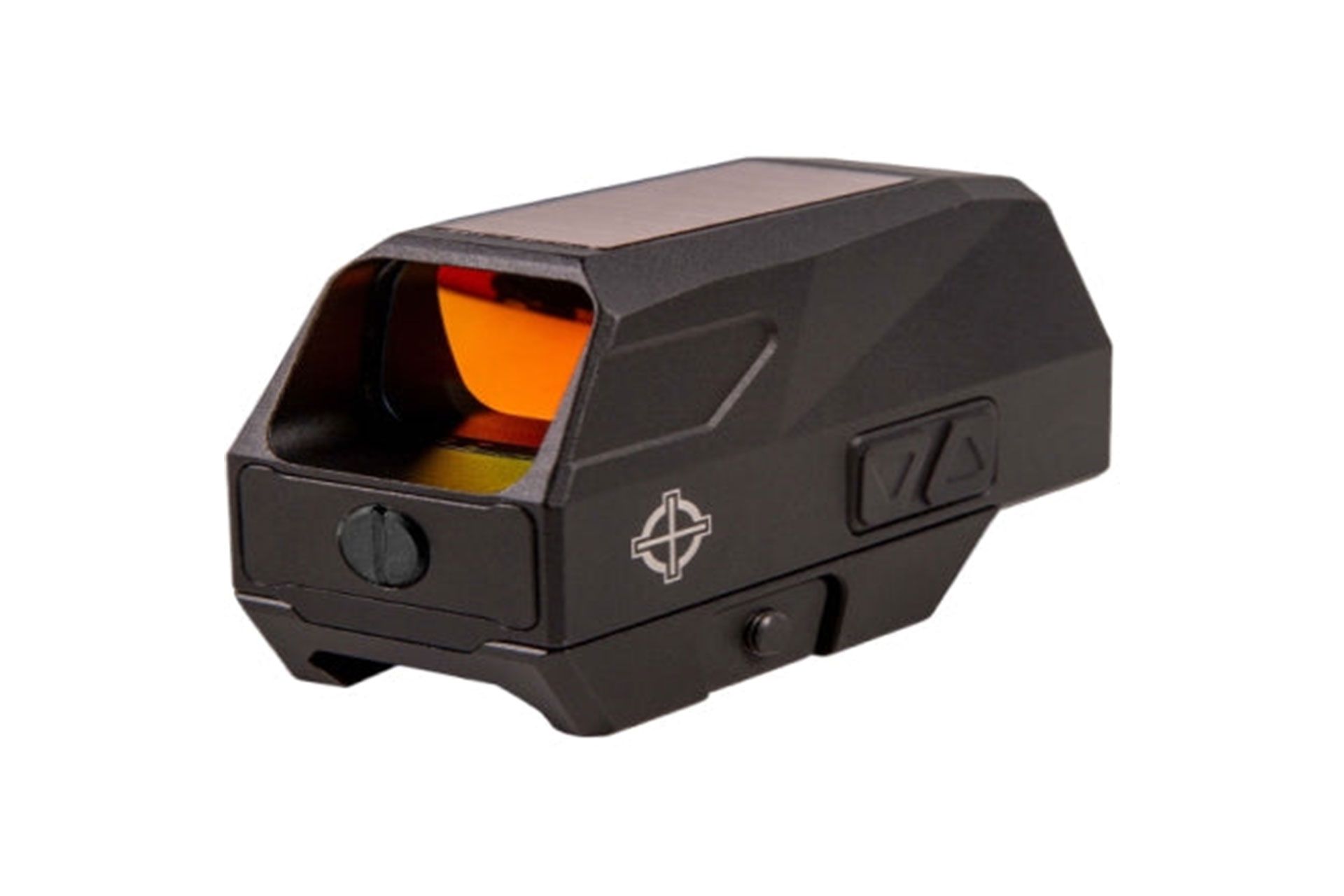 The Volta solar red dot is truly the best of both worlds, combining solar and battery power to provide uninterrupted operation. The Volta is powered by 2x AAA batteries and features solar cells directly on top of the optic, giving users the option to choose what works best for their situation. Volta red dots boast the Eclipse Light Management System, a revolutionary technology for red dots which automatically adjusts the red dot reticle’s brightness based on the shooter’s environment. The heavy-duty Volta’s covered design is tougher than open-style red dots and a scratch-resistant, anti-reflective lens coating adds even more durability. Other popular features include an adjustable-height mount, digital switch brightness controls, single side access to both windage and elevation adjustments, unlimited eye relief and shockproof design. All Volta red dots come standard with a protective rubber cover, low picatinny mount, absolute cowitness mount and Sightmark’s Lifetime Warranty.