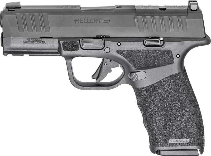 The Hellcat Pro is crafted for reliability and ease of use, featuring tritium/luminescent front sights and a tactical rack U-notch rear sight for optimal target acquisition in low-light conditions. The melonite-finished billet-machined slide enhances corrosion resistance while allowing for smooth slide manipulation. The textured grip design ensures a firm hold, improving control and reducing recoil for better accuracy.
