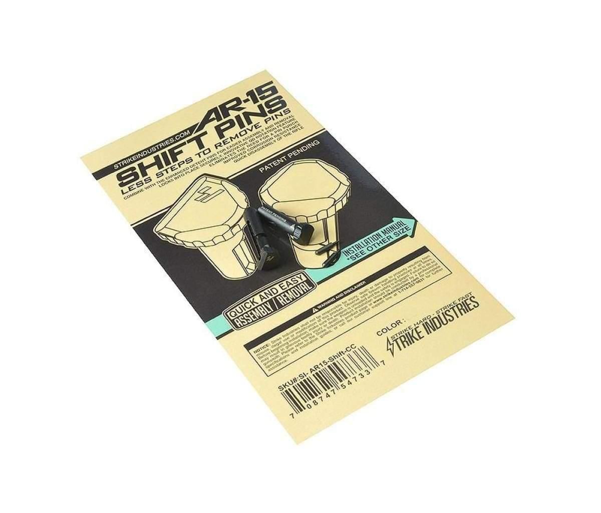 Enter the Strike Industries Shift Pins. Strike Industries has not just solved this problem, but has literally eliminated the problem altogether with their Shift Pins. The way that Strike Industries went about redesigning the Take Down pin is simple yet genius. They gave the head of the pin a bigger, thicker area to grab ahold of so the need for a pin punch is eliminated. They also re-thought the design of the pin itself and machined a slot into the pin, so all you have to do is rotate and remove the pins exactly as shown in the directions. Knowing that the take down detent pin could also cause a problem for the end user, Strike Industries redesigned them so they are retained inside the pin spring. These features combine to provide AR15 builders with take down pins that are easier to install, remove, and operate. And as always, the AR15Discounts.com guarantee means if you’re not satisfied for any reason, you can send the product back within 30 days for a full refund.