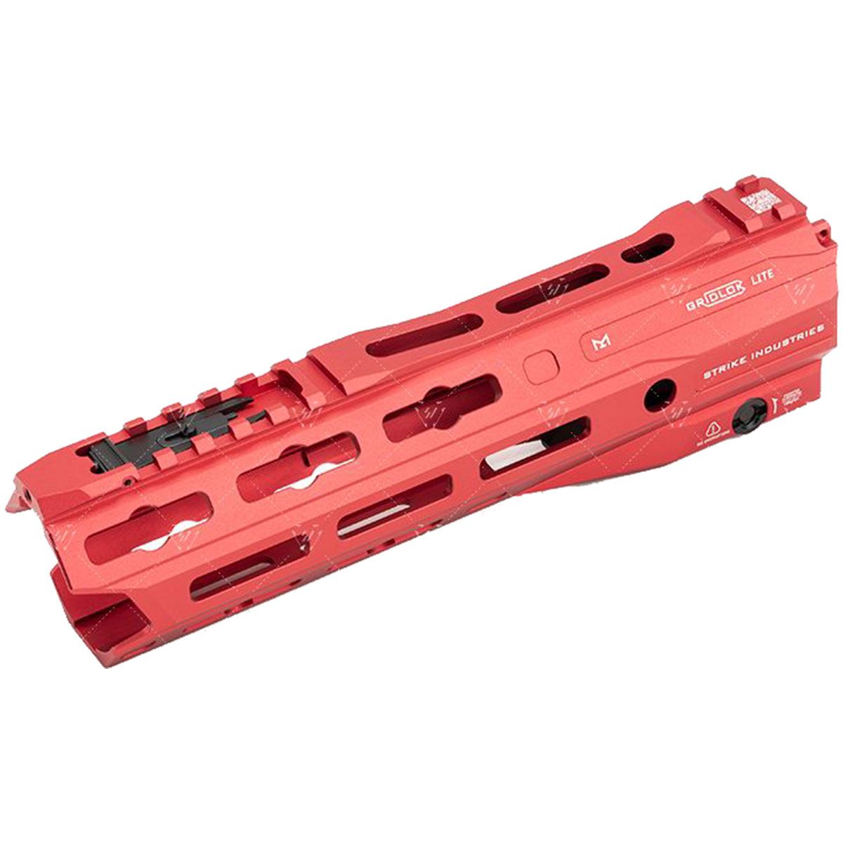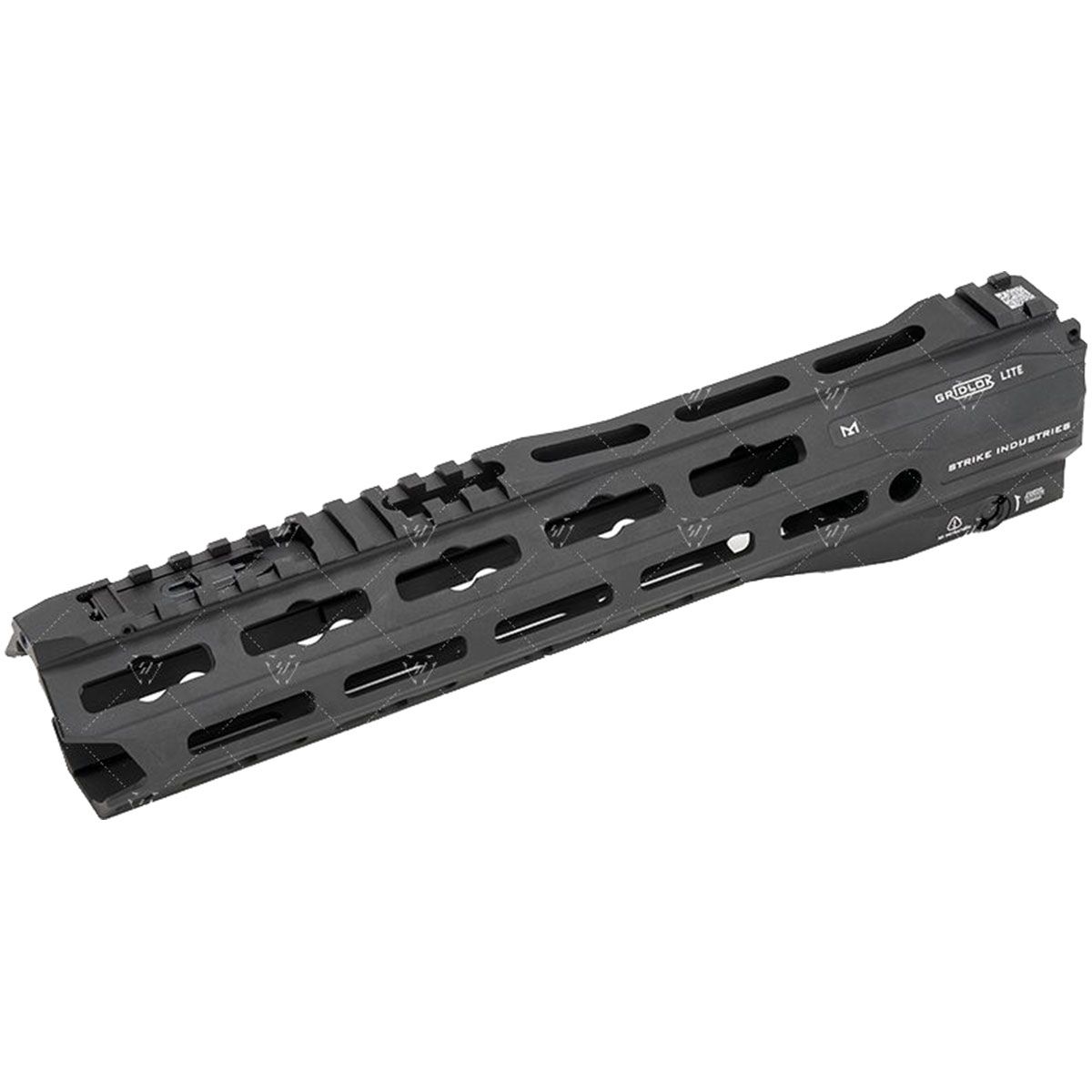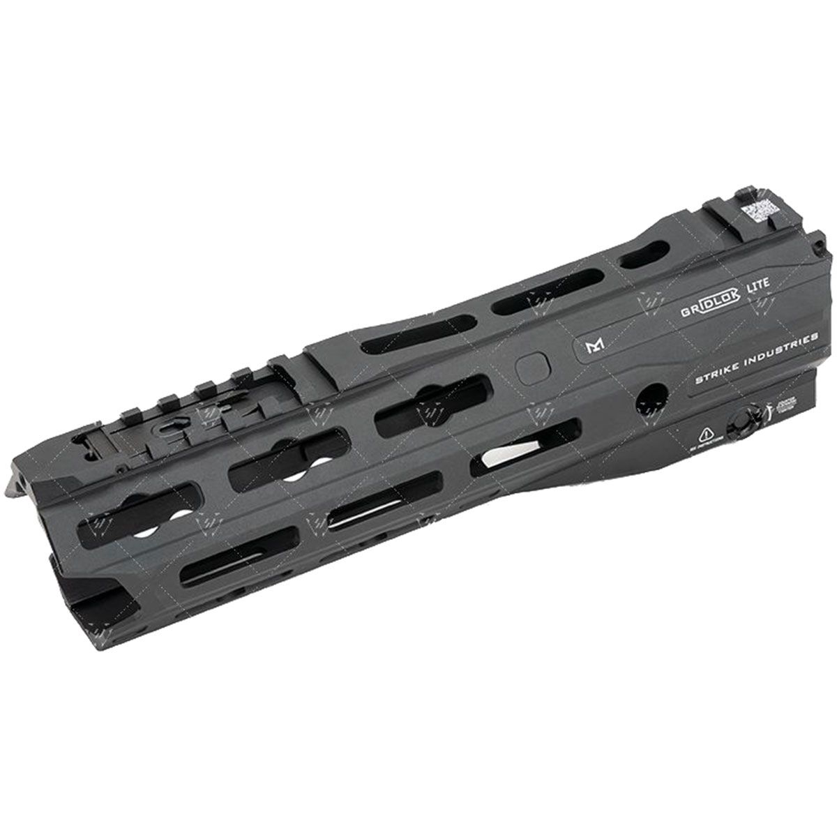 The Strike Industries GRIDLOK® LITE Rail For AR-15 takes innovation from GRIDLOK® but this is a 1-piece design to minimize weight and offer a cost-effective option. Using the same Patent Pending Quick Rail Detach system, there is no other handguard that can be removed at home or in the field on the market today. With the Quick Rail detach system, a simple push and pull of the of the quick detach (QD) latch, you have the handguard off in seconds to make any adjustments to an adjustable gas block or installation/removal of a suppressor. The QD latch has also been redesigned with a new locking button for earlier latch locking. Integrated into the front of the GRIDLOK® LITE is the built-in flip up backup iron sight (BUIS). Just about any M-LOK accessories can be attached and mounted along the length of the rail at 1, 3, 5, 6, 7, 9 and 11 o’clock positions giving you as many options as any handguard on the market. In the rear of the handguard you will find a integrated 360° free swivel QD socket for a 2-point setup. Rear tabs with set screws at the top the SI GRIDLOK® LITE help center the top rail to the upper receiver to ensure proper alignment. Front cut in front was designed to help fit suppressors up to 1.57″ in diameter and of course all SI muzzle devises including the SI OPPRESSOR for those looking for that tucked look. The handguard is machined from 6061-T6 aluminum and the barrel nut is machined from 7000 series aluminum which excels in applications that require lightweight and high strength. The Strike Industries GRIDLOK® LITE For AR-15 brings you features and improvements from big brother GRIDLOK® but with a more lightweight and cost-effective option.