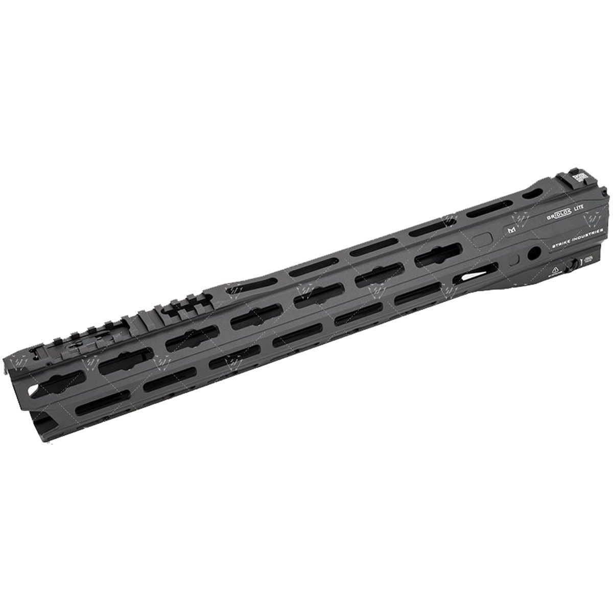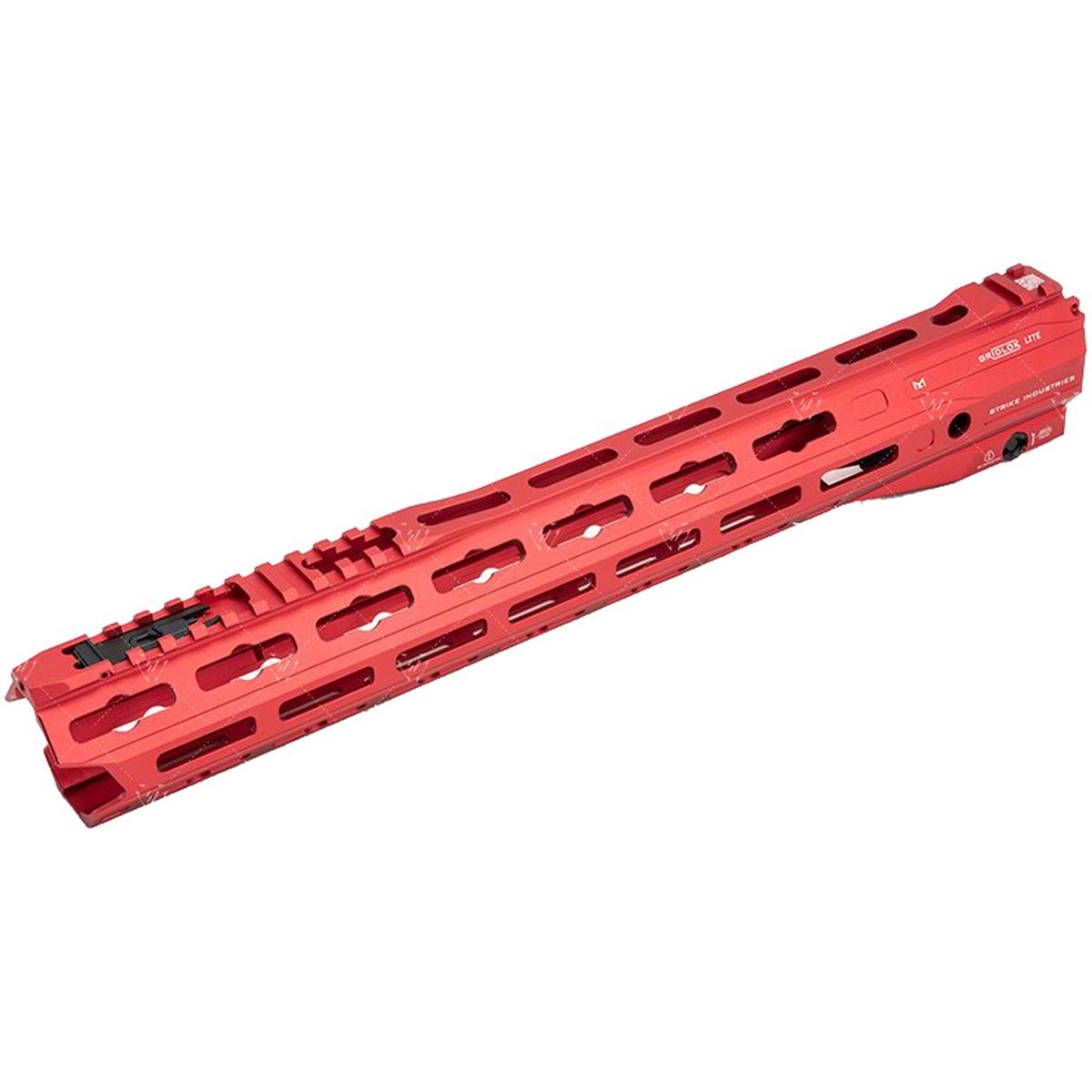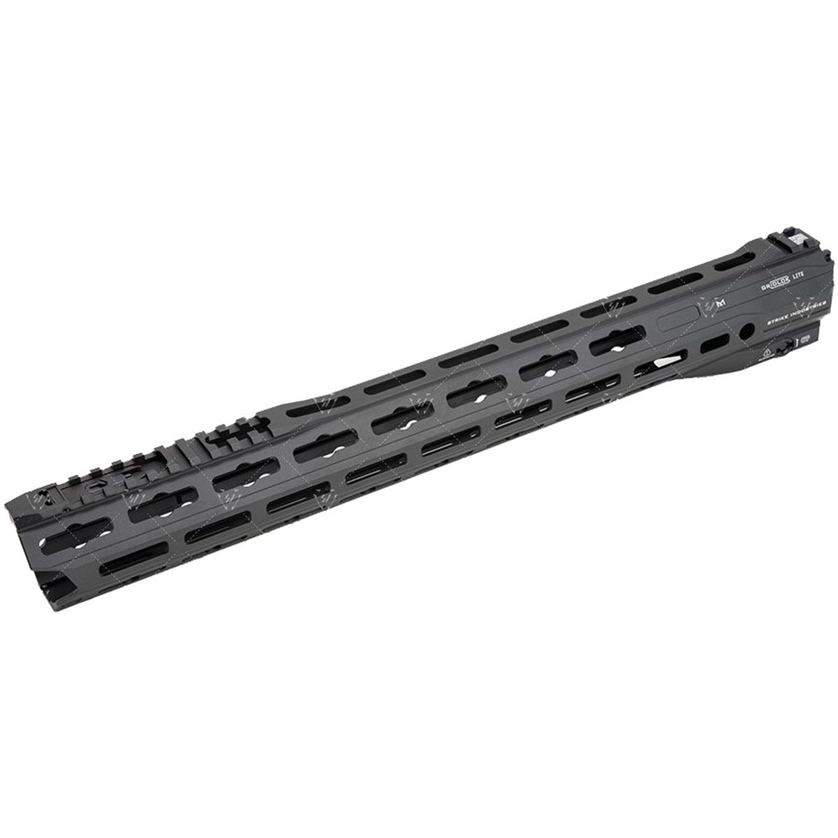 The Strike Industries GRIDLOK® LITE Rail For AR-15 takes innovation from GRIDLOK® but this is a 1-piece design to minimize weight and offer a cost-effective option. Using the same Patent Pending Quick Rail Detach system, there is no other handguard that can be removed at home or in the field on the market today. With the Quick Rail detach system, a simple push and pull of the of the quick detach (QD) latch, you have the handguard off in seconds to make any adjustments to an adjustable gas block or installation/removal of a suppressor. The QD latch has also been redesigned with a new locking button for earlier latch locking. Integrated into the front of the GRIDLOK® LITE is the built-in flip up backup iron sight (BUIS). Just about any M-LOK accessories can be attached and mounted along the length of the rail at 1, 3, 5, 6, 7, 9 and 11 o’clock positions giving you as many options as any handguard on the market. In the rear of the handguard you will find a integrated 360° free swivel QD socket for a 2-point setup. Rear tabs with set screws at the top the SI GRIDLOK® LITE help center the top rail to the upper receiver to ensure proper alignment. Front cut in front was designed to help fit suppressors up to 1.57″ in diameter and of course all SI muzzle devises including the SI OPPRESSOR for those looking for that tucked look. The handguard is machined from 6061-T6 aluminum and the barrel nut is machined from 7000 series aluminum which excels in applications that require lightweight and high strength. The Strike Industries GRIDLOK® LITE For AR-15 brings you features and improvements from big brother GRIDLOK® but with a more lightweight and cost-effective option.