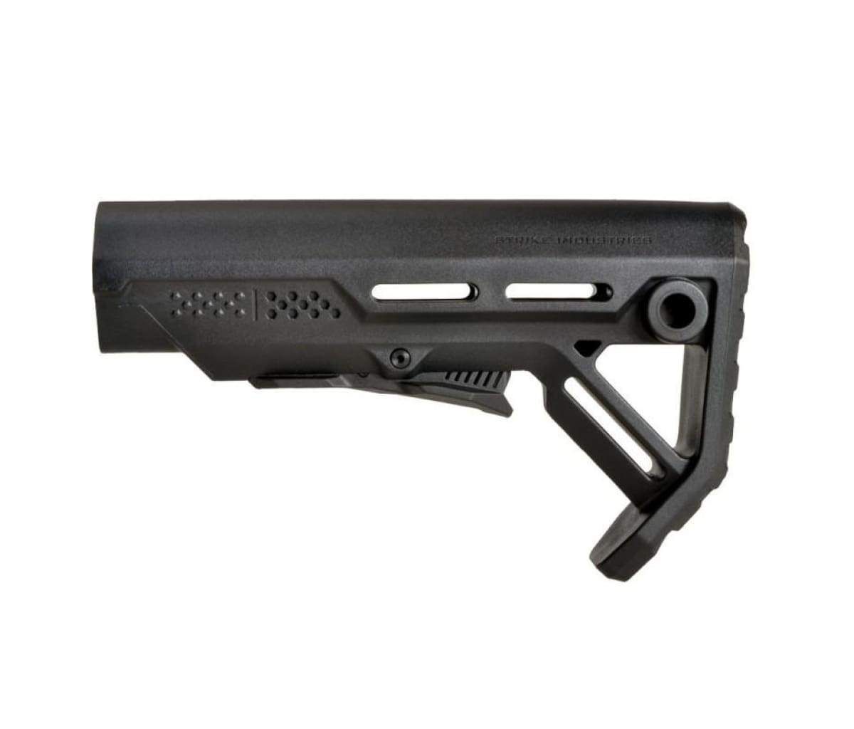 Strike Industries drop-in replacement buttstock for AR/15/M16 carbine using mil-spec sized receiver extension tubes. The stock integrates features sought by military professionals and firearms enthusiasts around the world. Strike Industries came up with a lighter, compact buttstock, at an even more attractive price point.