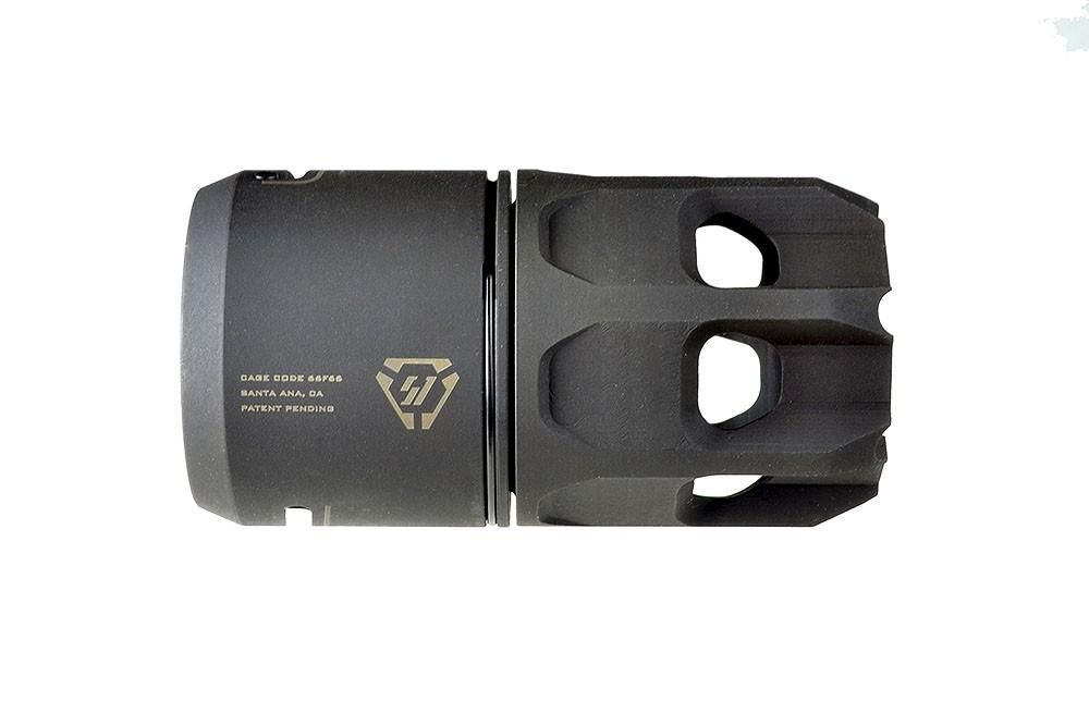 The Strike Industries Oppressor represents the next evolution in concussion reduction devices. Typical concussion reduction devices simply sleeve the brake, with a simple open end to redirect gasses. The OPRESSOR is compatible with the SI muzzle devices to include: Venom-FH, Checkmate Comp, King Comp, MK-9 Comp, J-Comp Gen2, Sierra Comp, and Triple Crown Comp. While this does accomplish reducing side concussion, braking performance becomes reduced as well. Designed with computer aided flow dynamics, the SI Oppressor provides a no compromise solution for redirecting the overpressure produced by aggressive brakes and compensators. Advanced internal geometry actively draws the gasses out and thrusts the gasses forward through vents to accomplish linear braking in order to retain more braking efficiency. Using a proprietary quick detach mounting system, the Oppressor can be rapidly installed before transitioning to prone shooting positions, or for indoor use.