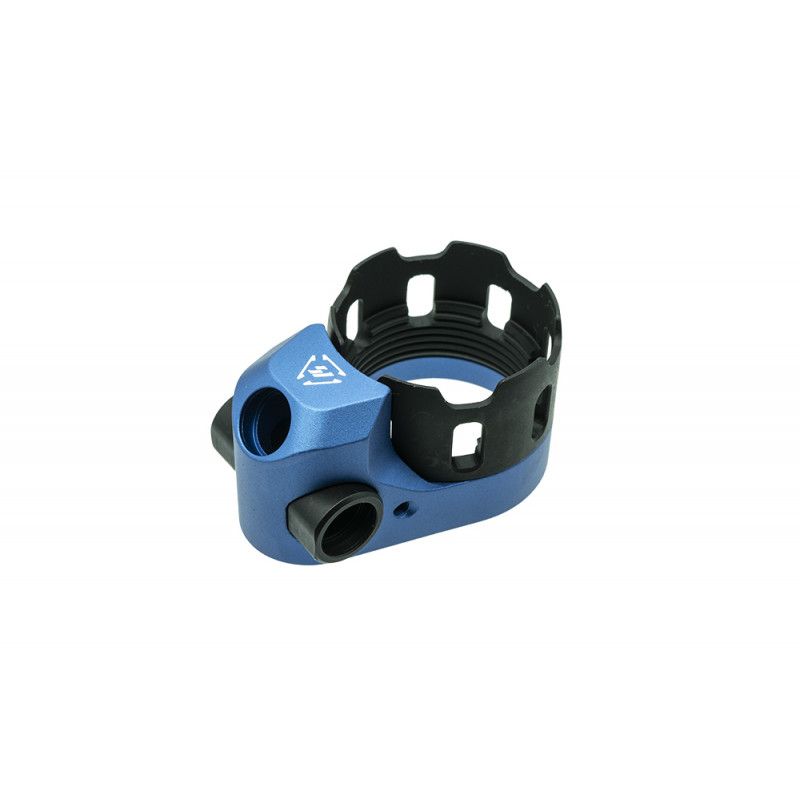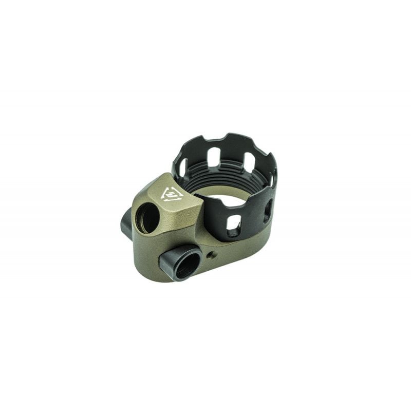 Introducing the TRIBUS Enhanced Anti-Rotation Castle Nut & Extended End Plate. The TRIBUS is next iteration of the previous AR-ECN&EEP. New features include two addition QD mounting points added to the left & right side of the extended end plate. Totaling in 3 QD mounting points. The extended end plate’s QD mounts are pushed back away from the webbing of the primary hand, allowing for better weapon manipulations in tight spaced and under stress without the startling pain that can result from a pinched hand when using a sling attached to a standard, flat QD end plate. Another big improvement is the added anti-rotation castle nut feature. Once installed, use the set screw to prevent the castle nut from backing out during weapon usage. The TRIBUS is available in an anodized color line.