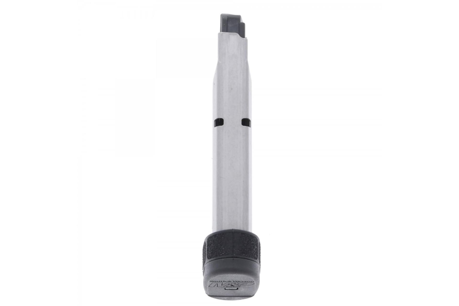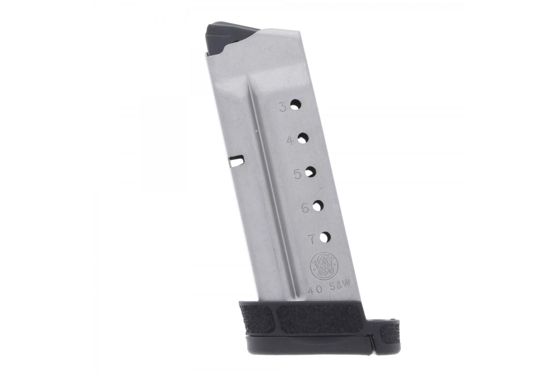 Featuring tough steel construction, the Smith & Wesson® S&W M&P® Shield™ 2.0 .40 S&W 7-Round Magazine offers superior strength and durability when firing hard-hitting .40 S&W ammo. This factory magazine features an extended polymer baseplate for improved stability and control for quicker follow-up shots. The rugged steel spring and durable polymer follower ensure smooth, reliable feeding while numbered witness holes offer quick, easy round counts on the fly. With over a million Shields already sold, the M2.0 is an improvement on perfection—featuring enhanced grip texture and a smoother trigger pull for maximum performance in practically any situation. Likewise, these magazines are compatible with first-generation Shield pistols while offering a slight upgrade in functionality and performance. Grab a few spare magazines for your Shield pistol today!