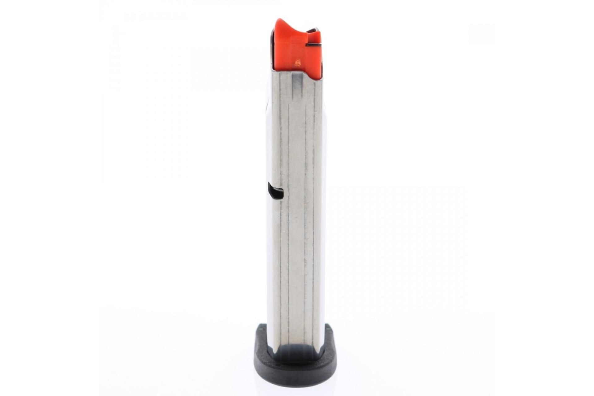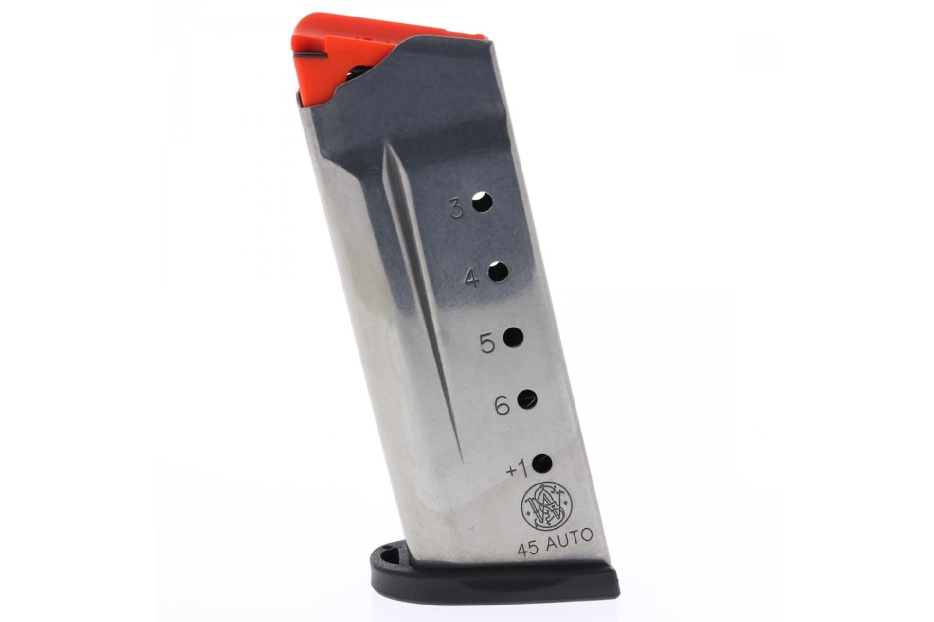The Smith and Wesson® S&W M&P Shield .45 ACP 6-Round Stainless Steel Factory magazine is a genuine Smith & Wesson factory magazine, designed for consistent and reliable operation and a snug fit for your favorite target or defense pistol. Constructed from durable stainless steel, this centerfire pistol offers unparalleled strength, and lasting corrosion and shock resistance that helps this magazine resist everyday wear and tear whether it be from inside your pocket or a full day at the shooting range. This Smith & Wesson magazine features a stainless steel wire spring and polymer follower that ensure proper feeding and cartridge alignment in high-stress target and defensive scenarios. The M&P Shield™ is one of the most popular conceal and carry pistols among shooters. Double down on firepower with a few spare 6-round magazines today.