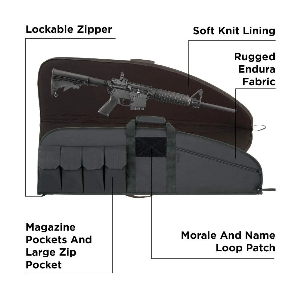 - Compatibility: Fits most modern sporting rifles up to 42″ with or without scopes