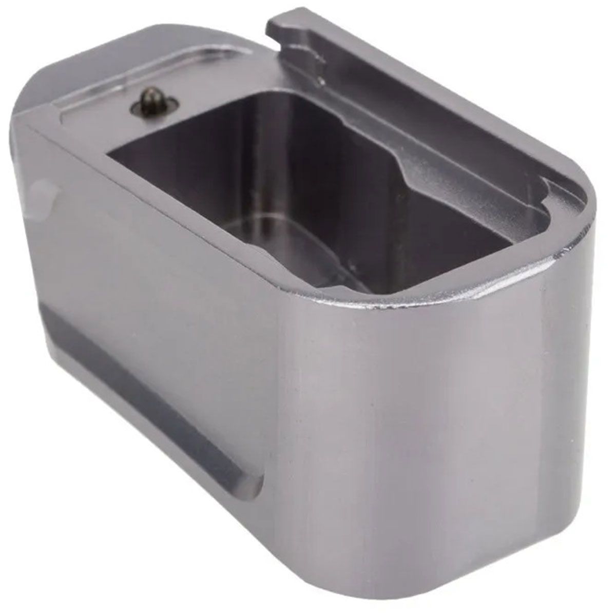 The Tyrant Designs Magazine Extension for Glock 43 gives you plus 2 rounds of 9mm ammunition for your concealed carry setup. This Mag Extension features an innovative retention plunger that allows for easy installation and removal in a matter of seconds. It is precision CNC machined from aerospace grade aluminum to match the profile and dimensions of the Glock 43 frame for an aesthetically pleasing and seamless fit. Not only does it increase capacity, but it also improves ergonomics by giving you more surface area to grip onto and helps mags drop freely faster. Improve the performance and look of your Glock 43 with the Tyrant Designs Extended Magazine Basepad.